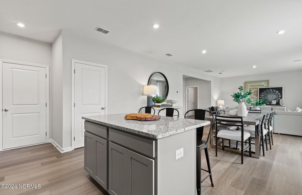 Welcome home to Ocean Pointe! A charming coastal community where modern living meets relaxed seaside style. The Rosella floor plan offers a spacious open-concept layout that seamlessly connects the kitchen, dining, and living areas, creating the perfect setting for family gatherings and entertaining guests. The kitchen is designed with both elegance and functionality in mind, featuring stainless steel appliances, granite countertops, white cabinetry, a large island, and a generous walk-in pantry. Just off the main living area, a versatile first-floor room provides flexible space for a home office, den, or playroom, while a conveniently located powder room adds extra comfort and accessibility. Upstairs, the expansive owner's suite serves as a private retreat, complete with a walk-in closet and a luxurious en-suite bathroom that includes dual quartz vanities and a beautifully tiled shower. Three additional bedrooms offer ample space for family or guests and share a well-appointed full bathroom. A spacious central loft provides even more possibilities for relaxation or creativity"”ideal as a media room, reading nook, or second office. Throughout the home, EVP flooring enhances the modern aesthetic, while the included washer, dryer, and window blinds make this home truly move-in ready. Designed for comfort and efficiency, the Rosella also features a hybrid electric water heater, an upgraded HVAC system, and pre-installed high-speed 1GB Focus Broadband internet included with your HOA dues. Located just minutes from stunning beaches, shopping, dining, and the vibrant communities of Wilmington and Southport, Ocean Pointe offers a perfect blend of convenience and coastal charm. Come visit our on-site model and see for yourself why the Rosella is the perfect place to call home!