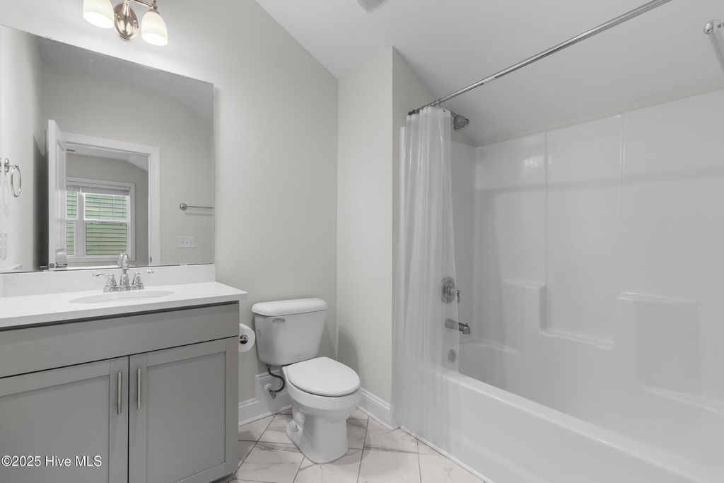 Welcome to this stunning two-story home featuring a modern open floor plan with 4 bedrooms and 3.5 baths. The bright foyer opens to a versatile flex space and a spacious living area that flows seamlessly into a designer kitchen with quartz countertops, stainless steel appliances, a gas range, and a large island perfect for entertaining. The first-floor Owner's Suite offers a spa-inspired bath with dual vanities, a walk-in shower, and a generous closet. Upstairs includes three additional bedrooms, one with a private ensuite. Enjoy upscale finishes throughout, LVP flooring, a gas fireplace, tankless water heater, and a fully fenced backyard with a screened-in porch and covered patio ideal for outdoor living. Perfectly located near Carolina Beach, the Riverfront, The Pointe at Barclay, and Downtown Wilmington.