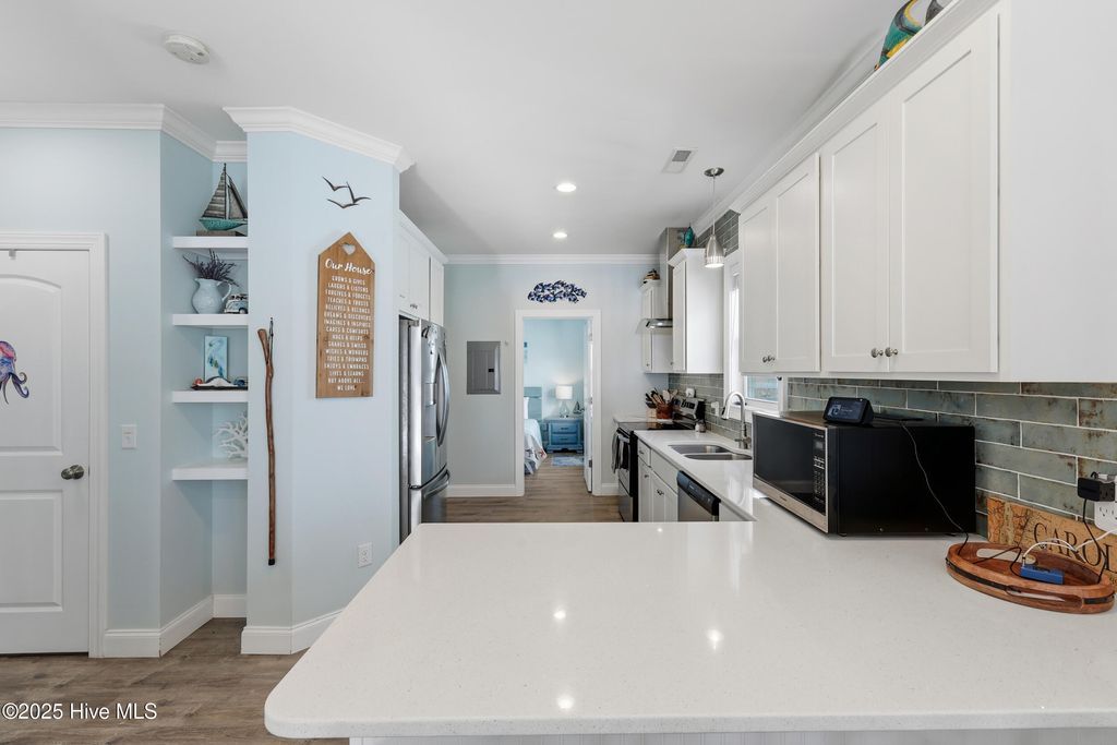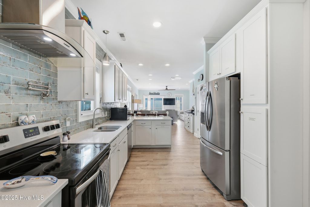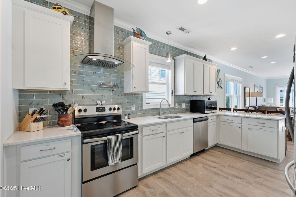 Wake up to the sound of waves in this beautifully maintained second-row townhome on Carolina Beach Avenue N, just steps from the ocean and minutes from everything Carolina Beach has to offer. Built in 2018, this 3-bedroom, 3-full bathroom home features luxurious custom upgrades, 9+ ft ceilings on both levels, and bright, light-filled rooms throughout. The stunning chef's kitchen is a true highlight, offering stainless steel appliances, a hooded range, ample cabinet space, granite countertops, a coffee bar, pantry, and a designated dining area perfect for gathering with family and friends. Front decks on both levels boast ocean views, ideal for morning coffee or evening relaxation, while the spacious interior provides abundant storage throughout. Below, the covered carport area includes a storage closet, parking for multiple vehicles, and plenty of flex space to entertain or unwind. Whether you're seeking a primary home, vacation getaway, or investment property, this turn-key residence is an amazing opportunity for investors and beach lovers alike. With a proven year-round rental history and a prime location just a short walk to the Carolina Beach Pier, this townhome is ready for its next chapter.