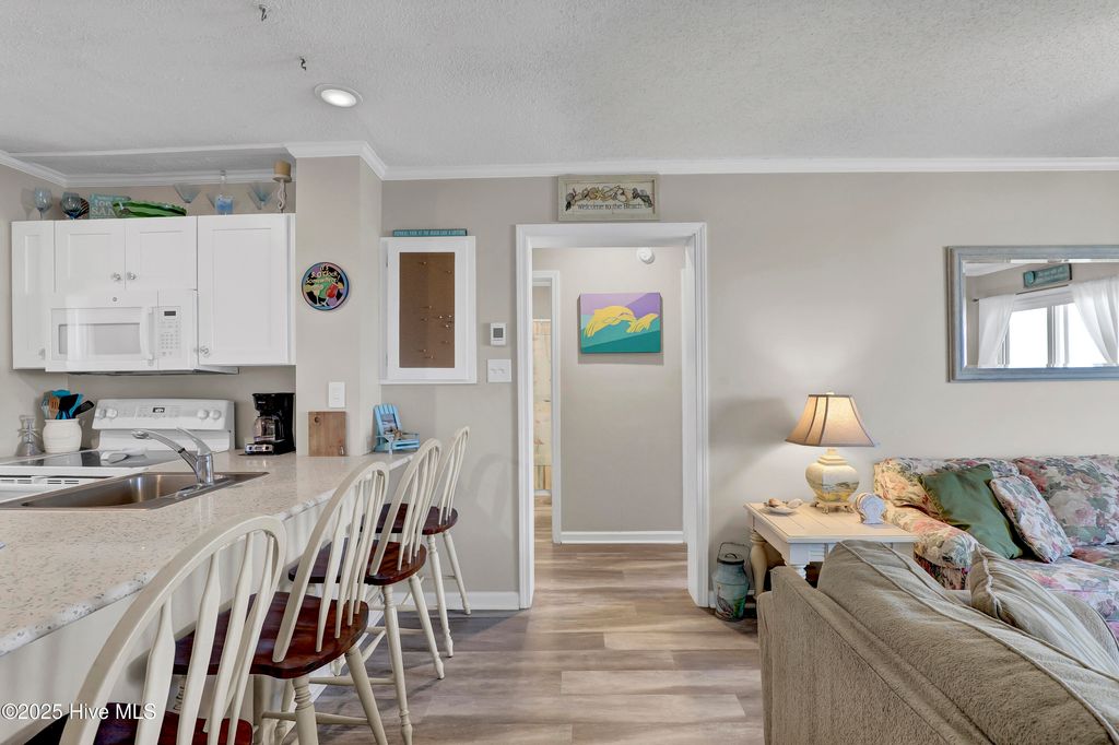 If you've been dreaming of the perfect oceanfront escape, this is it. This beautifully remodeled 2 bedroom, 1 bath end unit at Topsail Reef feels like your own slice of paradise, where every day starts with the sound of waves. From the living room and the primary bedroom, you can step right out onto your private oceanfront deck and take in those sweeping panoramic views of the Atlantic. Inside, the condo shines with coastal charm and modern updates. It was recently refreshed with updated cabinets, quartz countertops, and LVP flooring that ties everything together in a clean, beachy style. The stove, microwave, and water heater were replaced in 2019, and new AC units were installed in both the living room and primary bedroom in May 2025 to keep you cool and comfortable year-round. The HOA also recently replaced all the oceanfront decks, giving the exterior a fresh, solid update to match the beautiful interior. Sold fully furnished, this condo is completely move-in ready and waiting for you to start making beach memories. Whether you're searching for a peaceful getaway, a weekend retreat, or a solid investment property, this oceanfront gem delivers it all. The view, the updates, the location, the vibe, this is Topsail Island living at its best.