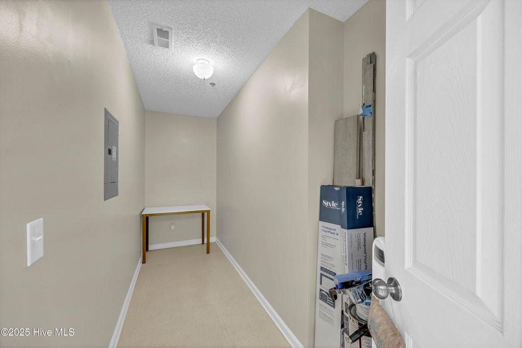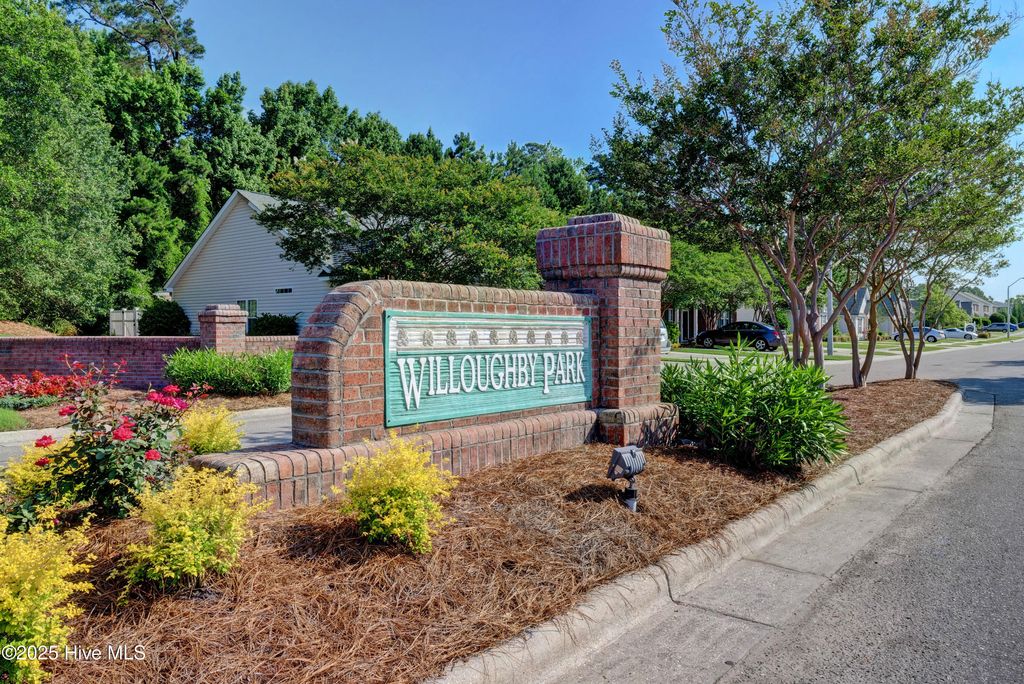 Welcome to your bright and airy two bedroom, two bath condo in the Monkey Junction area, conveniently situated between downtown Wilmington and Carolina Beach. This second story condo features new flooring with no carpets, newer air handler and cheery fresh paint. Living space is open concept with vaulted ceilings and copious windows. Off the living room you have a large screened balcony with a wooded view. The grand primary bedroom has extra large ensuite bathroom with dual vanities and two closets. Willoughby Park offers a neighborhood pool to enjoy on sunny days.