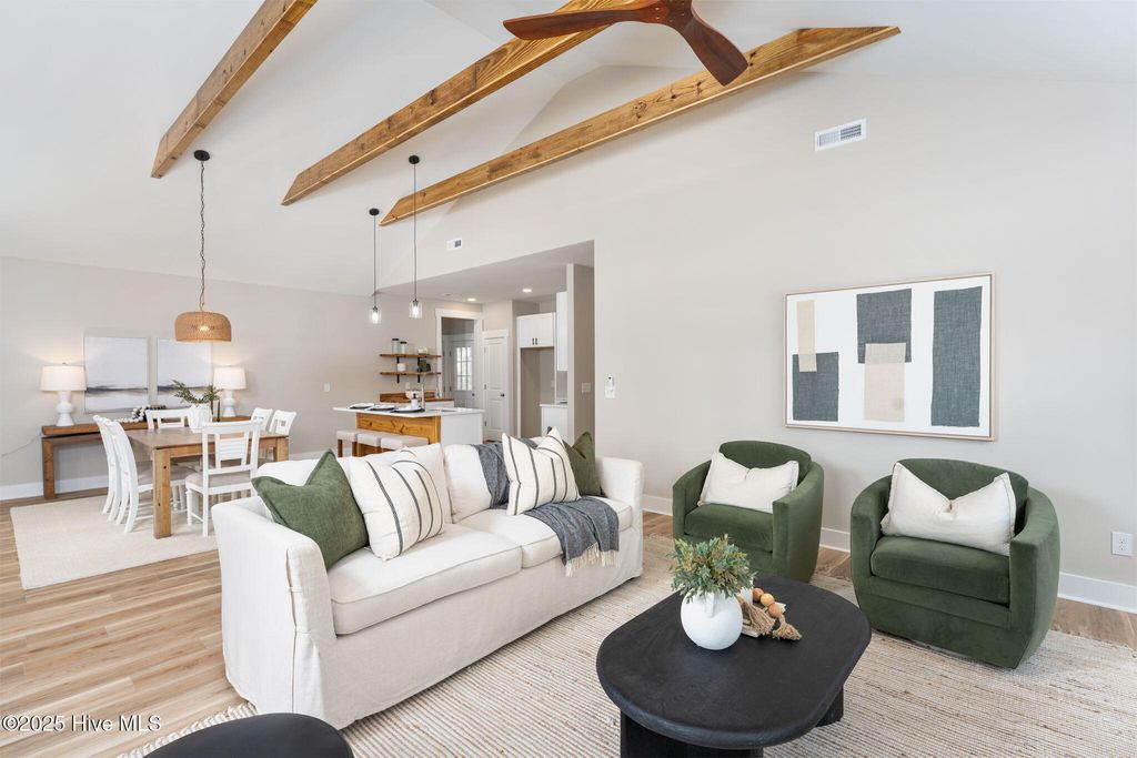 Just listed - 329 N Dyson St in Holly Ridge NC. This newly finished 1,579 sq ft Cape Cottage style home offers 3 bedrooms and 2 baths with an open floor plan, luxury vinyl plank flooring throughout the living areas, tile bathrooms, exposed beams, and a true craftsman finish and feel. Built by Swan Song Properties, led by Wilmington builders Steve and Sara Dutton, this home showcases quality craftsmanship and thoughtful details in every room. Located in the fast-growing Holly Ridge downtown, you'll be minutes from Surf City and Topsail Beach with easy commuter access to both Jacksonville and Wilmington. Just two blocks from the Holly Ridge Municipal Park, which is undergoing an exciting expansion with a new community center, athletic fields, pickleball, basketball and volleyball courts, walking trails, and a stage for community events. Experience the perfect blend of small town charm and modern convenience with this high-quality new construction"”and best of all, no HOA.