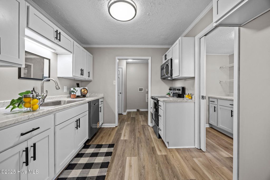 Beautifully renovated home on a corner lot in the heart of Jacksonville! The home has plenty of space with 3 bedrooms, 2 bathrooms, a bonus room off the living area that would make the perfect office or playroom and a large 2nd living area off the kitchen with an attached sunroom. The covered front porch is the perfect spot for sipping your favorite beverage and enjoying the lovely NC weather. With numerous upgrades including new HVAC system, new LVP flooring and carpet, new paint throughout, new tub surround, vanity, toilet, new stunning kitchen/appliances/countertops. Location is central to all things Jacksonville; bases, shopping, and restaurants.