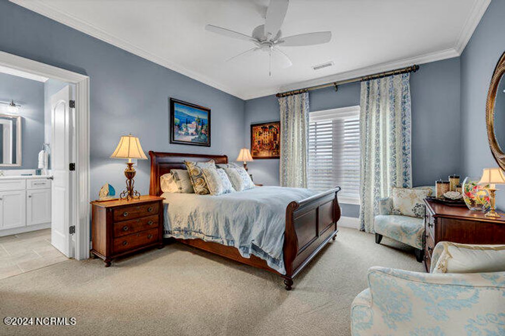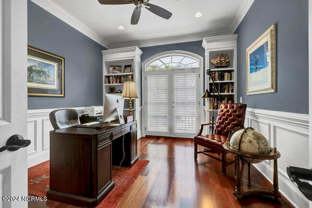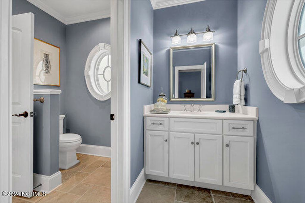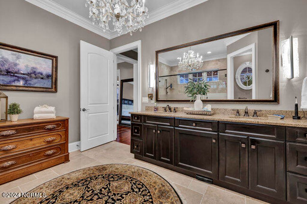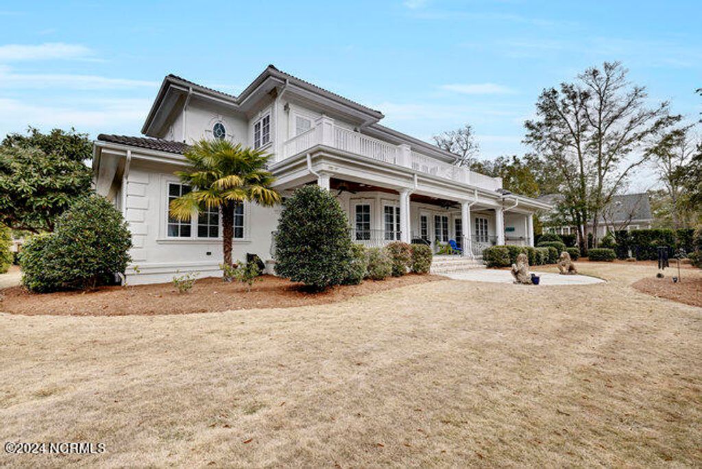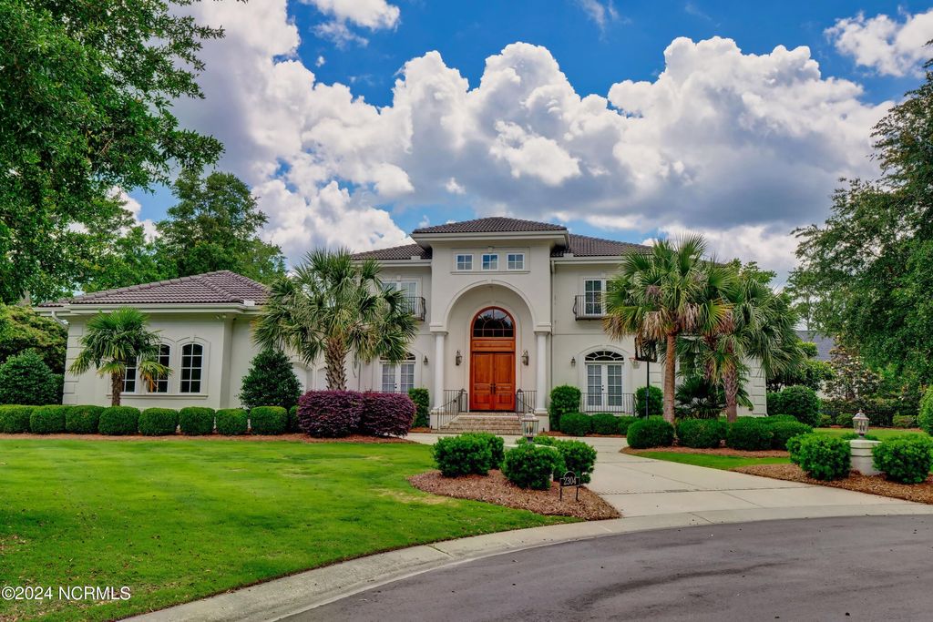The approach to 2304 Ocean Ridge Place begins along one of Landfall's most sought after streets, Ocean Ridge Drive, and offers stunning views of the signature golf hole of the Jack Nicklaus designed Ocean Course; the par 3 #4 with the intracoastal waterway, Figure 8 Island, Wrightsville Beach and the Atlantic Ocean as the backdrop! Surrounded by beautiful estate architecture, the quiet cul-de-sac location provides the perfect setting for this Mediterranean inspired residence. The custom built home was designed and built by Mack Braxton of RMB Designs, a master craftsmen known for some of Landfall's finest residences. Arriving home will always be a pleasure with its' curbside appeal; a low maintenance stucco exterior, barrel tile roof and lush landscaping. As you enter the home thru the oversized solid mahogany double doors, you will be embraced by the quality appointments and attention to detail including Brazilian cherry floors, tall ceilings and doors, coffered living room ceiling and wrought iron stair railing. Large formal rooms are open to one another for elegant entertaining while the chef's kitchen/family room provides the ideal gathering place for casual family get togethers with large granite center island, stainless appliances that include natural gas cooktop with griddle, wine refrigerator, gas oven, warming drawer, separate prep sink and large pantry. Outdoor entertaining will be a breeze with a grilling area, refrigerator, sink and over 600 sq feet of covered porch and additional 500 square feet of second floor open air balcony. The 4 bedroom 4 ½ bath design includes a first floor master with adjacent study, elegant bath with oversized frameless glass shower and multiple shower heads and large walk-in closet with custom built-ins. As you move up the open staircase, you will be greeted by a large gathering area the walk out balcony. Each of the 3 upstairs bedrooms have dedicated baths. Addition features include whole house natural gas generator, natural gas instant hot water, central vac, separate shop area in the 2 car garage, enclosed crawlspace with dehumidifier. This masterpiece is move in ready and a must see. When only the best will do!