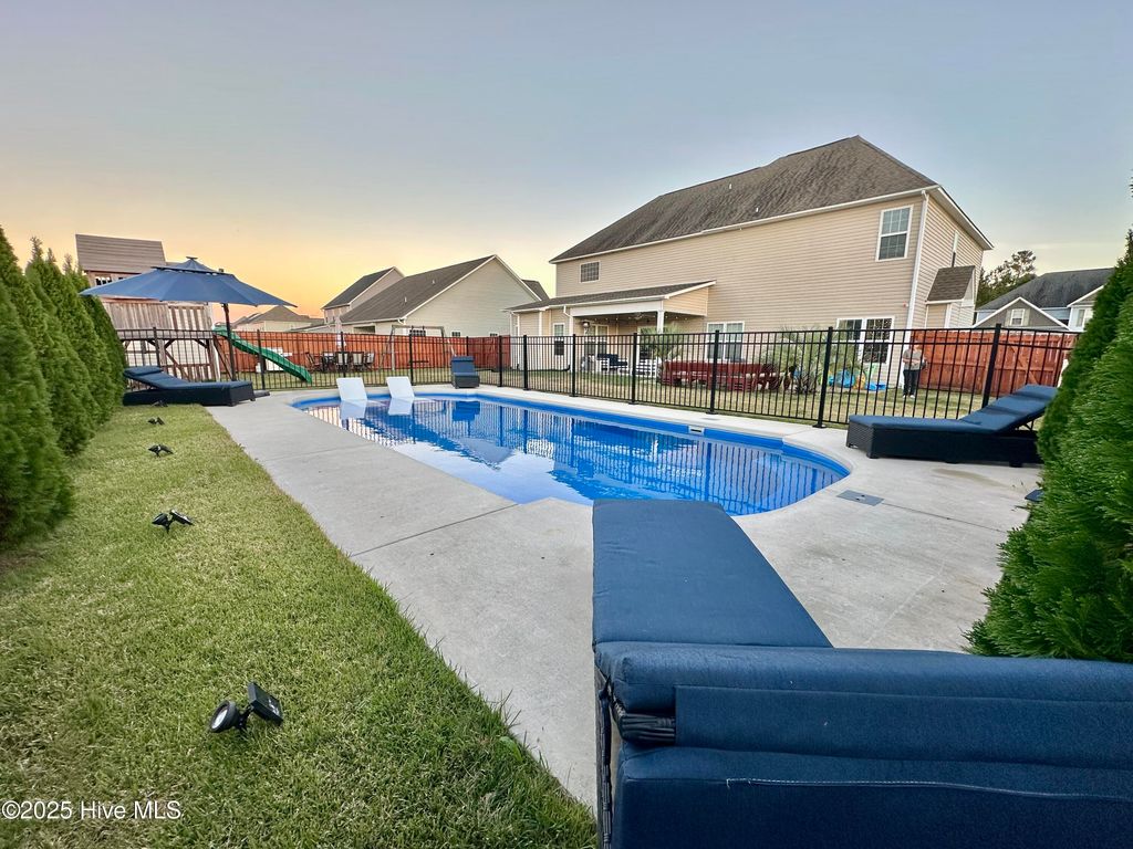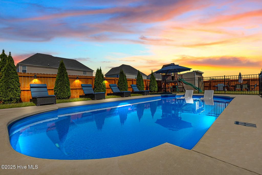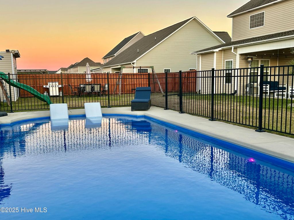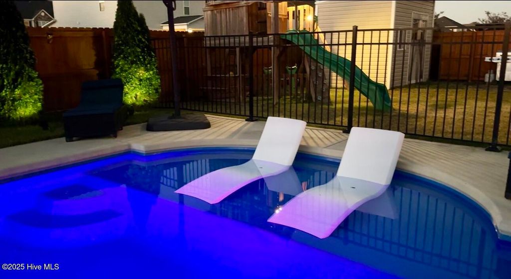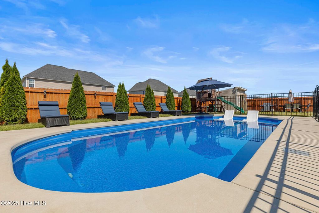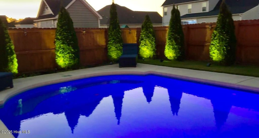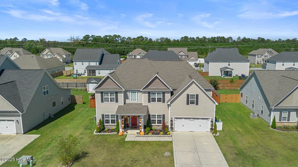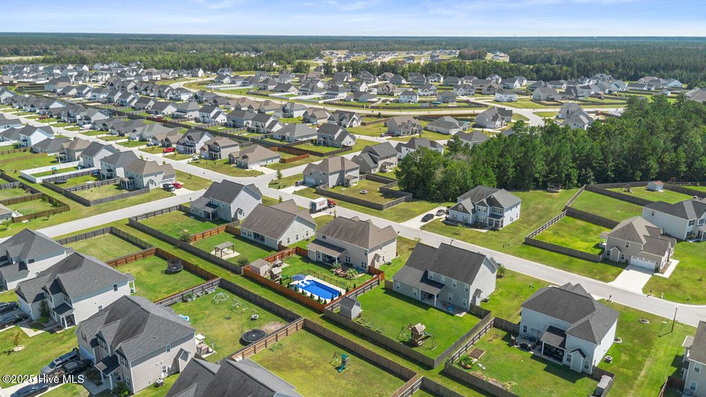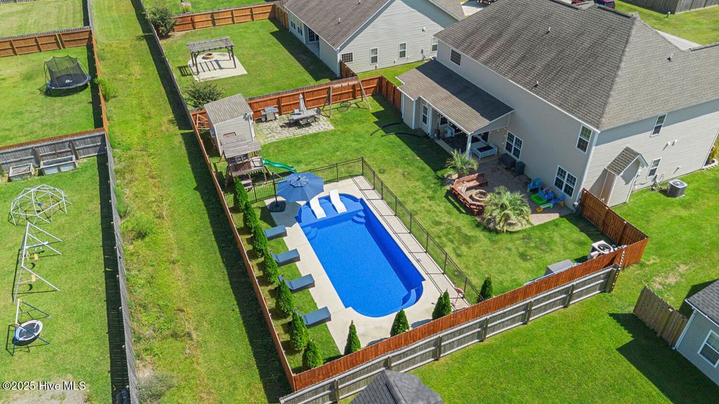 This amazing & beautiful 4 BR & 2.5 Bath HOME comes with all the BELLS & WHISTLES * County Taxes ONLY * In-Ground 16 x 36 Saltwater Fiberglass Pool, added in 2023, with additional concrete and safety metal fence to separate from the fenced-in 6 ft wooden fence and Backyard Play Area, an addition of approx. $75,000 * PLUS: Play Fort Set * Wired Shed * Swing Set * Paved Patio & Custom-Built Bench Around The Fireplace, Covered Back Porch 10'0 x 15'2 * A Generator to keep you going * 3 Refrigerators * Kitchen Granite Counter Tops * Kitchen Island & Bar * Plenty of Kitchen cabinets * Kitchen Induction Stove Top * Custom-Built Closet Systems * VIVINT Alarm System w/ Doorbell, Garage Driveway & Backyard Sensor, Back Door Glass Break Sensor, Thermostat Is Paid Off and conveys for free -- only a new monthly subscription is needed .... and so much more to explore. The HOA Community also offers an additional Community Pool & Clubhouse, Ponds & Ducks, Sidewalks. LOCATION is perfect: Short driving distance to CAMP LEJEUNE Piney Green Gate with approx. 7 minutes, Main Gate with approx. 10 minutes, Wilson Gate with approx. 13 minutes, Hubert Gate with approx. 15 minutes and closest access to Onslow Beach. MCAS New River / Camp Geiger and Camp Johnson is approx. 20-22 minutes away, and MARSOC in Sneads Ferry / Holly Ridge is approx. only a 35 minutes commute. This Home is a ''MUST SEE'', only 6 years of age, it beats any new construction!