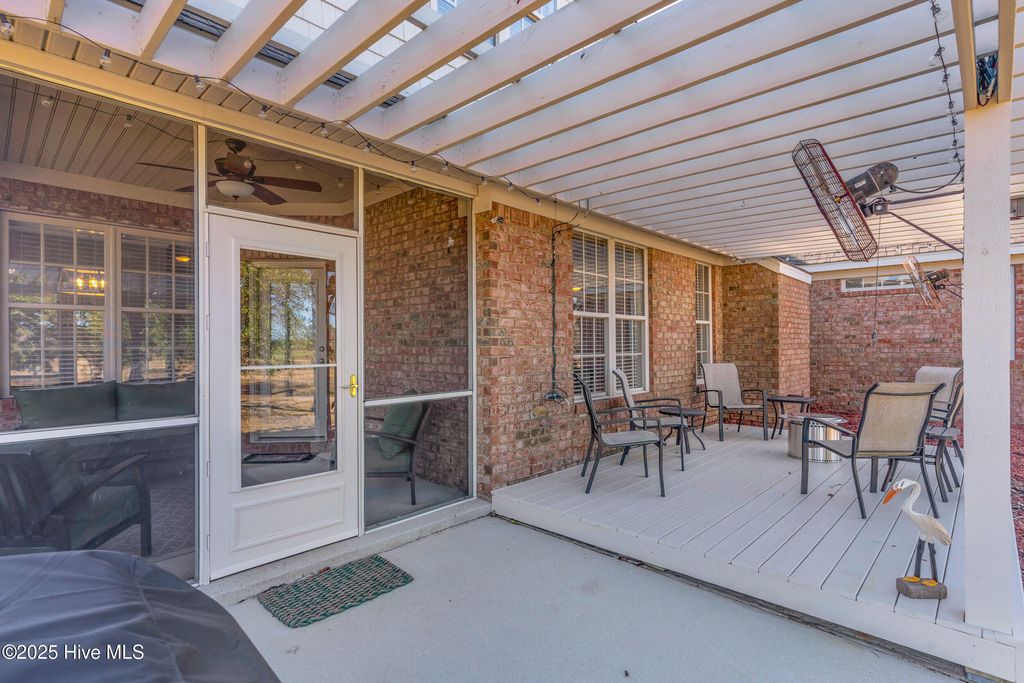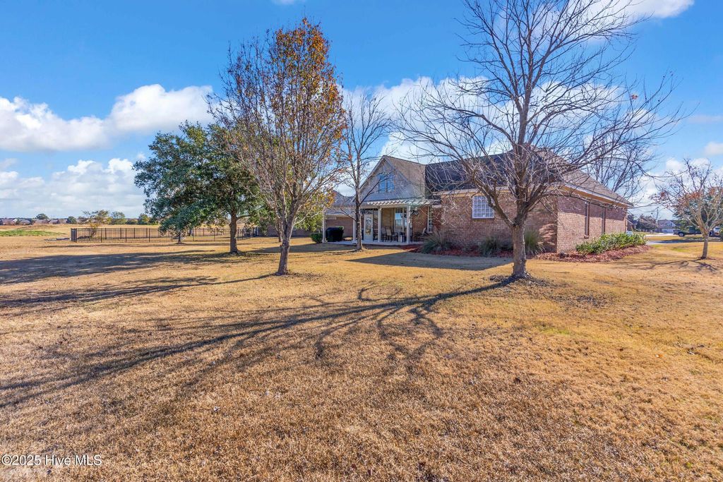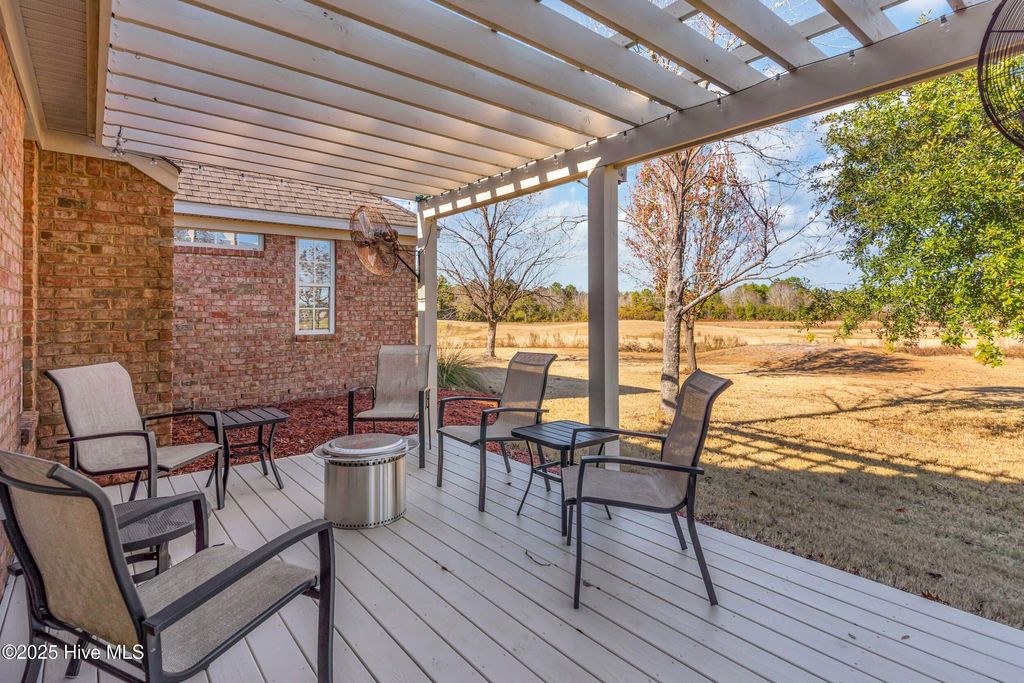 Welcome to 100 Scotlands Court. Nestled at the back of a quiet cul-de-sac in the private Castle Bay community of Hampstead, NC, this beautiful 5-bedroom, 3-bathroom brick home offers 2,485 square feet of thoughtfully designed living space across two floors. Inside, you'll find a first-floor master suite with a newer tiled shower, granite countertops, lots of storage, and a brand-new propane-fueled fireplace. The carpet in all bedrooms is just 4 months old, and the HVAC system was installed in 2023, offering peace of mind and efficiency. A screened-in porch with new screening provides a relaxing spot to enjoy the outdoors, along with scenic views of holes 5 & 6 of the Castle Bay golf course. Situated on a .33-acre lot, the property features an irrigation system in the front and back and has been freshly landscaped. Residents can also take advantage of the community's pool, pickleball, and tennis courts (membership required). Additional highlights include a spacious 2-car garage and a brand-new roof to be installed prior to closing. Combining privacy, comfort, and a prime location, this Castle Bay gem is ready for you to move in and make it your own. $2000 lender credit or 1 percent temporary rate buydown offered through our preferred lender, Chris Waggett at ALCOVA Mortgage