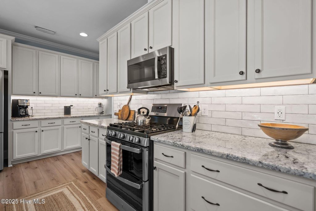 Welcome to this beautifully updated home offering modern comfort, thoughtful upgrades, and exceptional attention to detail. This meticulously maintained 4 bedroom, 3.5 bath property offers a spacious layout with generously sized bedrooms, each featuring walk-in closets for an abundance of storage. In 2023, the home was refreshed with brand new LVP flooring and carpet, fresh paint throughout, new lighting fixtures in the kitchen and dining room, and new ceiling fans. In 2024, new kitchen undercabinet lighting and a new tile backsplash were installed. New stainless steel kitchen appliances were installed in 2025, including a gas stove with upgraded double ovens, making this gourmet kitchen a chef's dream. The primary suite includes a convenient mini-split system for personalized climate control, while the tankless water heater and whole house generator provide efficiency and peace of mind year-round. A screened-in porch offers the perfect spot to relax and enjoy the large, fully fenced and well-maintained back yard, ideal for entertaining or outdoor activities. Additional features such as a large bonus room with its own full bath, granite countertops, large pantry, soft close cabinets, dimmable layered lighting, 2 living areas wired for surround sound, shed, home security system and termite bond all add comfort and confidence to this already impressive home. Located in a quiet, family-friendly neighborhood that is close to local parks, marinas, golf courses, and shopping, this home is truly turn-key and move-in ready "” all just minutes from Topsail Island beaches, award winning schools, and Wilmington. Don't miss your opportunity to make it yours! Reach out today to schedule a showing.