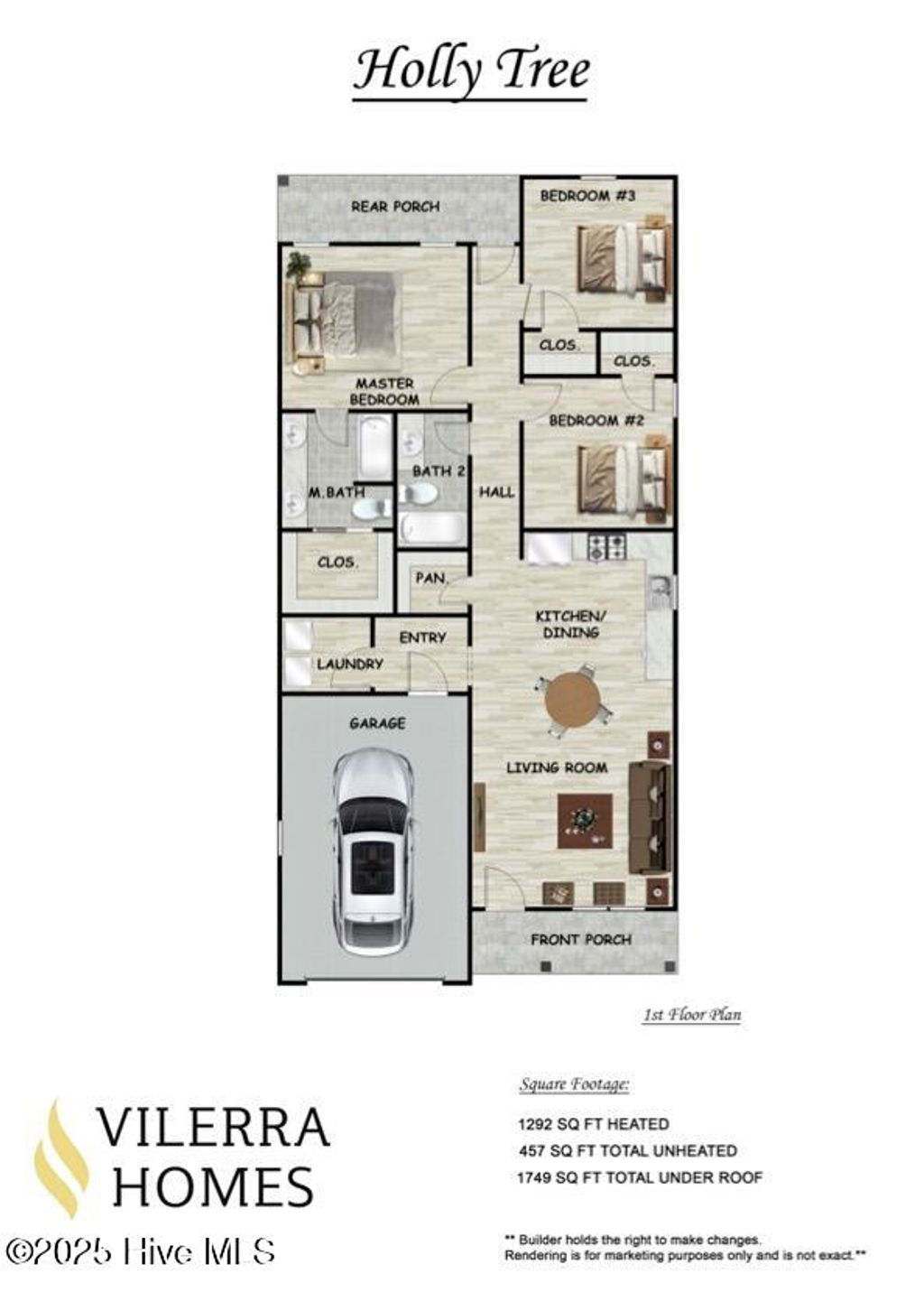 Introducing 1134 Watts Landing Road, a brand-new coastal retreat crafted by Vilerra Homes. This single-level residence sits on 0.46 acres with no HOA, offering a rare blend of modern design and everyday flexibility in the heart of Hampstead. Thoughtfully designed with open-concept living, the home features vaulted ceilings with a striking exposed beam, custom trim work, and no carpet anywhere"”a perfect combination of style and low-maintenance living. The kitchen is both functional and welcoming, showcasing quartz countertops, stainless steel appliances, abundant cabinetry, and a spacious walk-in pantry ideal for cooking or entertaining. The primary bedroom offers a peaceful escape with a tray ceiling and ceiling fan, while the ensuite bathroom features dual vanities, a beautifully tiled walk-in shower, and a generous walk-in closet. Two additional bedrooms and a full bath complete the split-bedroom layout. A practical mudroom with bench storage and a 1-car garage add to the home's convenience. Enjoy outdoor living on the covered front and back porches, and take advantage of the freedom that comes with a large lot and no HOA"”bring your boat, golf cart, or weekend toys. Located just minutes from Surf City, Topsail Island, and Hampstead's dining and shopping, this home offers the best of coastal Carolina living. Construction is underway with estimated completion at the end of December.