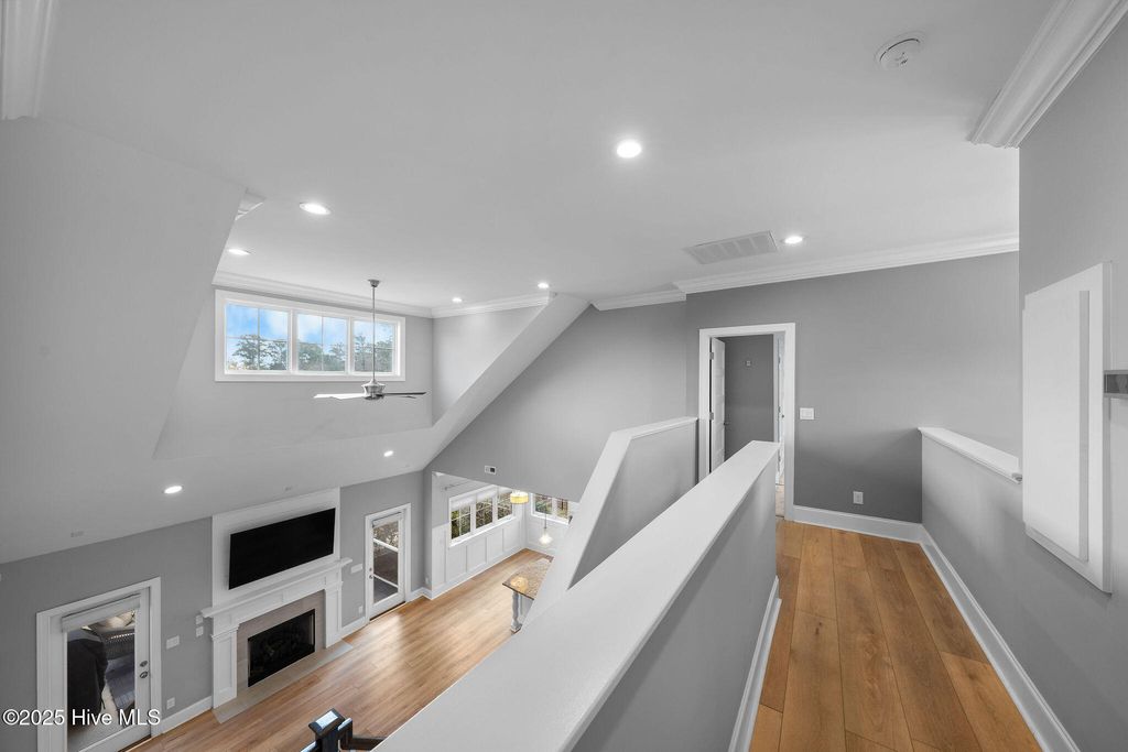This stunning home is just steps from the community pool and overlooks a serene pond, offering peaceful views year-round. 63 Evergreen Lane sounds like an address straight out of a Hallmark Christmas movie and is located only two miles from a public boat ramp with access to the ICWW. An ideal haven for anyone who loves coastal living. Inside, the spacious open-concept layout flows seamlessly from the living room into the gourmet kitchen, where an oversized granite island, wall oven, and elegant finishes create a perfect space for cooking and entertaining. From the living room, step out onto the screened-in porch and unwind while taking in the tranquil pond view. The main-level primary suite includes double closets and a spa-like bathroom featuring dual vanities, a freestanding soaking tub, and a luxurious walk-in shower. A versatile flex room at the front of the home is perfect for a home office or formal dining space. Upstairs, you'll find two additional bedrooms and a full bathroom, offering plenty of space for family or guests. Backyard was recently re-graded and sodded. High end LVP throughout the living areas were recently added. With the beautiful beaches of Topsail Island just minutes away, this exceptional home offers coastal convenience and it's priced to sell! Also, located in the desirable Topsail School District. Recent updates include new Swiss Trax flooring in garage, new ceiling fan in primary bedroom, new mini split in garage for heating and cooling.
