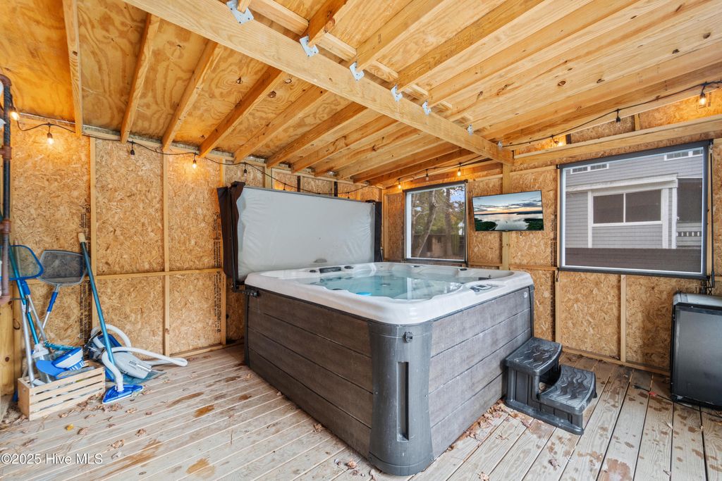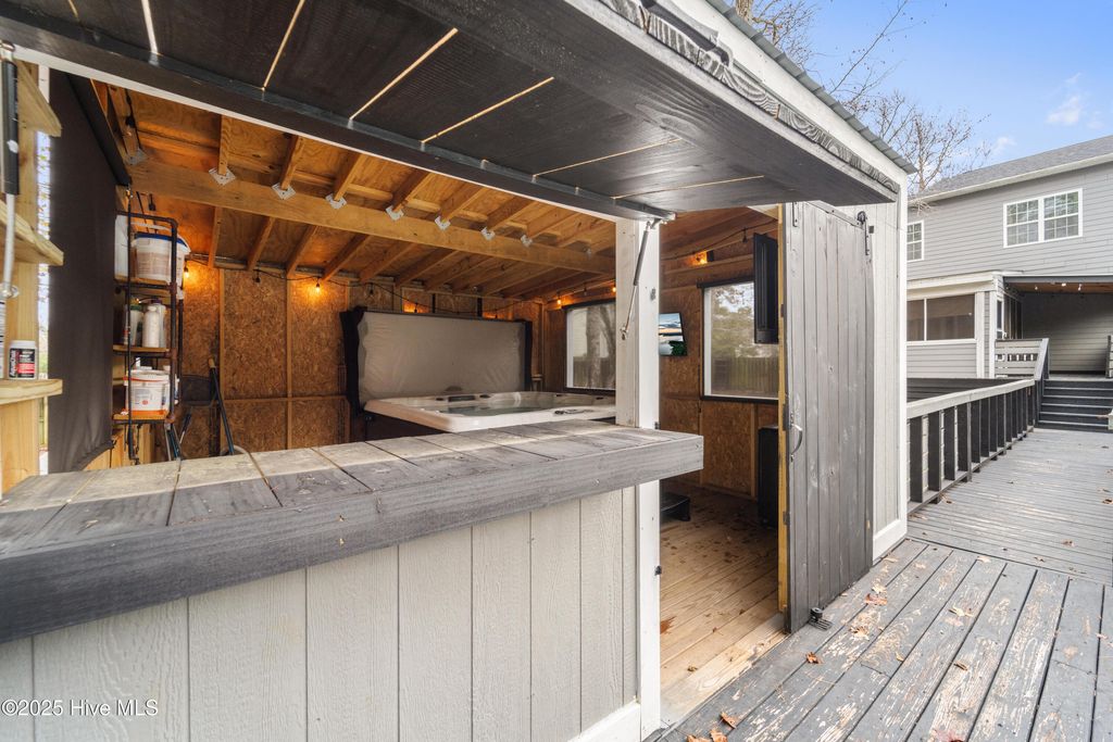 Welcome to 33 Medina Ct, a beautifully custom Colonial-style home on a quiet cul-de-sac in Hampstead, NC. With no HOA and two charming front porches, this property offers both flexibility and classic Southern appeal. Inside, over 3,000 square feet of thoughtfully designed living space creates a comfortable setting for everyday living and easy entertaining. The backyard feels like a private retreat. A spacious screened-in porch WITH A FIREPLACE overlooks the fenced 0.63-acre lot, while the large deck offers space to relax or enjoy dinner after a swim in the above-ground pool. A dedicated hot tub room (hot tub included, of course!) provides a peaceful retreat on cooler days. An outdoor shower and a separate fenced area for pets or gardening add even more convenience. Inside, the jaw dropping layout features three generously sized bedrooms with walk-in closets and two versatile bonus rooms upstairs. One those bonus rooms includes a unique bookshelf door, giving it a fun secret room/speakeasy feel. Fresh interior and exterior paint, refinished hardwood floors, a 2024 roof, 2019 HVAC system, and a crawl space with a dehumidifier and moisture barrier offer comfort and peace of mind. The spacious kitchen provides abundant counter space, a pantry, and modern appliances"”ideal for cooking, gathering, and entertaining friends and family! Located east of US 17, this home ensures quick access to local amenities, nearby beaches, and everything that makes Hampstead such a desirable place to live-while still giving you the independence of living without HOA or city limit restrictions. Blending charm, functionality, and modern updates, 33 Medina Court is ready to welcome YOU home.