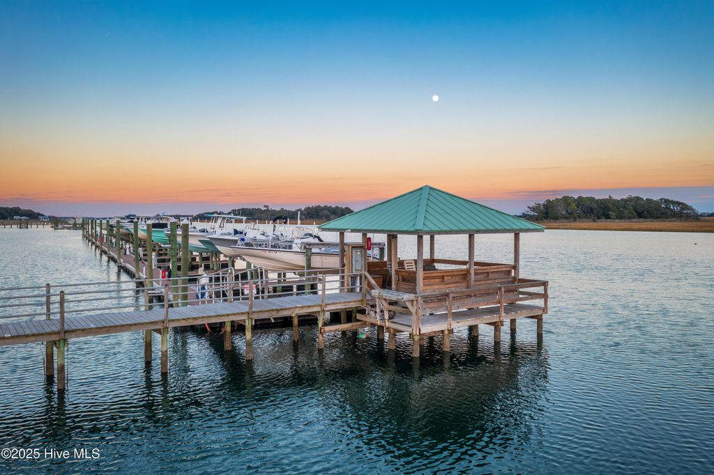 Welcome to 1408 Halcyon in Avenel, an Intracoastal waterfront community in Porters Neck. This 5-bedroom 4 full bathroom home offers exceptional indoor and outdoor living, plus an assigned, leased 26-ft/4,600-lb boat slip secured through 2032. Inside, the formal dining room features crown molding and board and batten, while the living room includes built-in bookshelves, a Mendota Hearth gas fireplace, vaulted ceilings with high windows, and double doors to the screened porch. The kitchen offers a farmhouse chocolate-brown sink, built-in oven and microwave, stone and tile backsplash, walk-in pantry, distressed tall cabinetry, and a Wolf induction cooktop with downdraft ventilation, plus a breakfast area and reverse osmosis water system. The primary suite includes crown molding, a walk-in closet with built-ins, dual vanities, tile flooring, a tiled walk-in shower with bench, and a freestanding spa soaking tub. Bedroom 3 located off the garage, provides access to a full bath with a walk-in shower"”currently used as an office. Bedrooms 4 and 5 have two closets, eave storage, and one offers private access to a semi-private full bath with dual sinks and a herringbone tile walk-in shower. A dedicated laundry room includes a utility sink and cabinetry. Outdoor living features a screened porch with tongue-and-groove ceiling, Trex decking, outdoor blinds, and marsh and pond views. Surround-sound speakers are installed on the front and back porches and in the family room. The front porch includes self-watering spouts for hanging plants controlled by phone. The two-tier deck offers Trex decking on the upper level, paver terrace on the lower level, built-in seating, a built-in fireplace, landscape lighting, and a gas grill hookup to propane. This home combines craftsmanship, comfort, and coastal lifestyle"”an exceptional opportunity in Avenel.