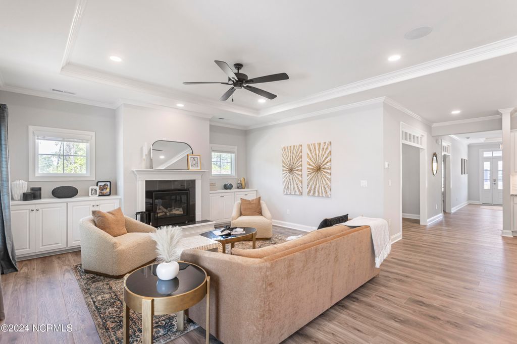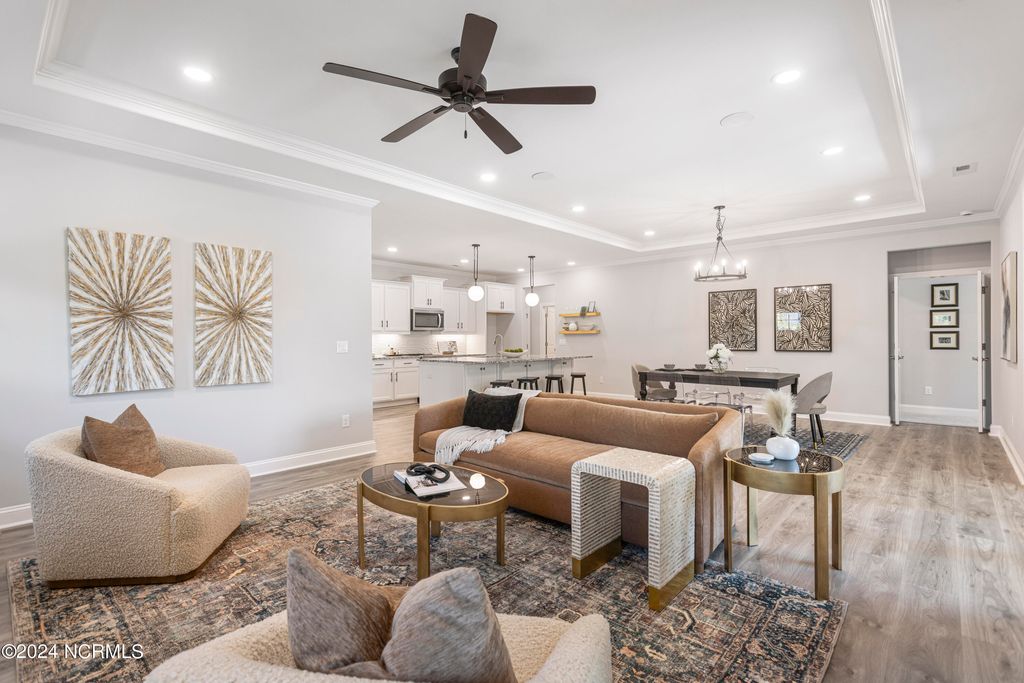 Est. Completion Summer 2026. Photos are of completed model home. The Linville by Trusst Builder Group. Completed staged photos are of a similar home. Our 2,317 sq ft Linville townhome offers three bedrooms, three baths, a study, and both a front and rear screened porch. An inviting front porch and entry open to a foyer with an illuminated tray ceiling. A side vestibule leads to a bedroom and bath. The main living area offers a kitchen with serving island, pantry and adjoining laundry room. The dining room and family room are finished with a shared tray ceiling and fireplace and open to the adjacent screen porch for light, breeze and extended living space. The study offers quiet space that can serve as an additional bedroom. The well-appointed primary suite is detailed with an illuminated tray ceiling, large walk-in closet, and bath with double vanity and walk-in closet. Stairs off the foyer lead to another bedroom suite or flex space with walk-in closet, bath with tub and attic storage. HOA-included lawn care, exterior building maintenance, and community pool among other items.