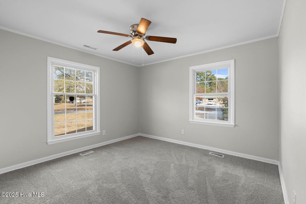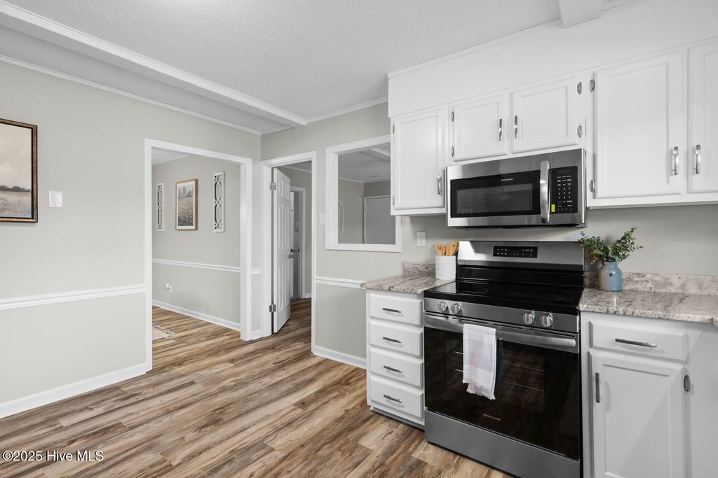Step into this beautifully updated home featuring brand-new flooring, fresh interior paint, and a modern kitchen with granite countertops. The primary suite offers a touch of luxury with its tile-surround shower. Enjoy multiple living and entertaining spaces, including a formal dining room, formal living room, and a cozy den with a fireplace perfect for relaxing evenings. Outside, the home offers a large screened-in porch overlooking a spacious backyard, ideal for gatherings, play, or relaxation. Situated on a corner lot in a quiet cul-de-sac, this property provides both privacy and convenience. Located in the center of town, you'll be just minutes from shopping, dining, and more. Plus, you'll appreciate the home's close proximity to Camp Lejeune Marine Corps Base, making it perfect for those seeking an easy commute. This home blends comfort, style, and an unbeatable location"”truly a must-see!
