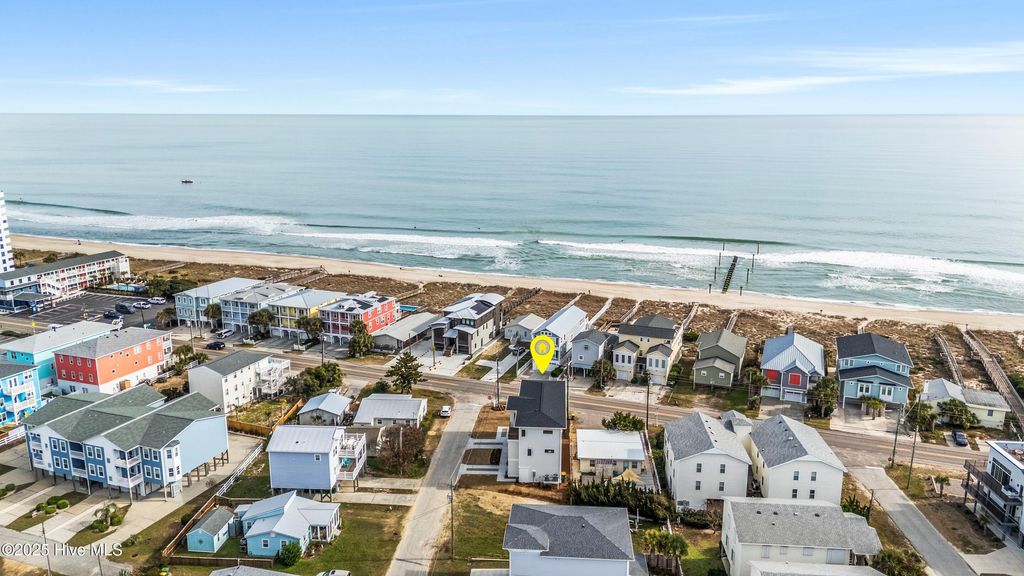 Introducing a stunning new modern coastal retreat in Kure Beach"”this sleek, ocean view home sits on a desirable corner lot steps from the Atlantic. Designed for both luxury buyers and investors, it blends contemporary elegance with elevated coastal style. An inviting entry foyer sets the tone with clean lines, soaring ceilings, and a dramatic sense of arrival, while thoughtfully integrating an elevator accessing each level of the home. The curated interior highlights a soft palette, natural light, and tasteful accent walls that add depth and character. On the top-floor, the living, dining, and kitchen areas form a seamless open-concept space for relaxing or entertaining. The kitchen is equipped with top-of-the-line Bosch appliances"”including an industrial 5-element induction range and under-counter microwave"”paired with quartz counters and a striking waterfall island. A contemporary fireplace adds warmth and visual impact to the living area, while generous balconies and expansive windows capture natural light and refreshing ocean breezes. With 5 bedrooms and 6 baths, including two primary suites"”one located on the main living floor"”the split floor plan offers privacy for owners and guests, with each bedroom having an ensuite bath. Additional features include floor-to-ceiling tiled showers, chrome fixtures, casement windows, multiple decks, irrigation system, low maintenance landscaping, outdoor shower, and dual garages. Designed and crafted by custom builder Dennis Moeller, the home showcases premium elements such as Hardie Plank siding, Ipe wood decks, solid mahogany entry doors, wind-rated windows and 40-year architectural shingles. You'll appreciate Kure Beach's peaceful shoreline, charming pier, and relaxed atmosphere. The NC Aquarium and two state parks are nearby along with Carolina Beach's boardwalk, shopping and dining. Don't miss this refined new coastal home"”ideal as a luxurious getaway, sophisticated primary home, or exceptional investment!