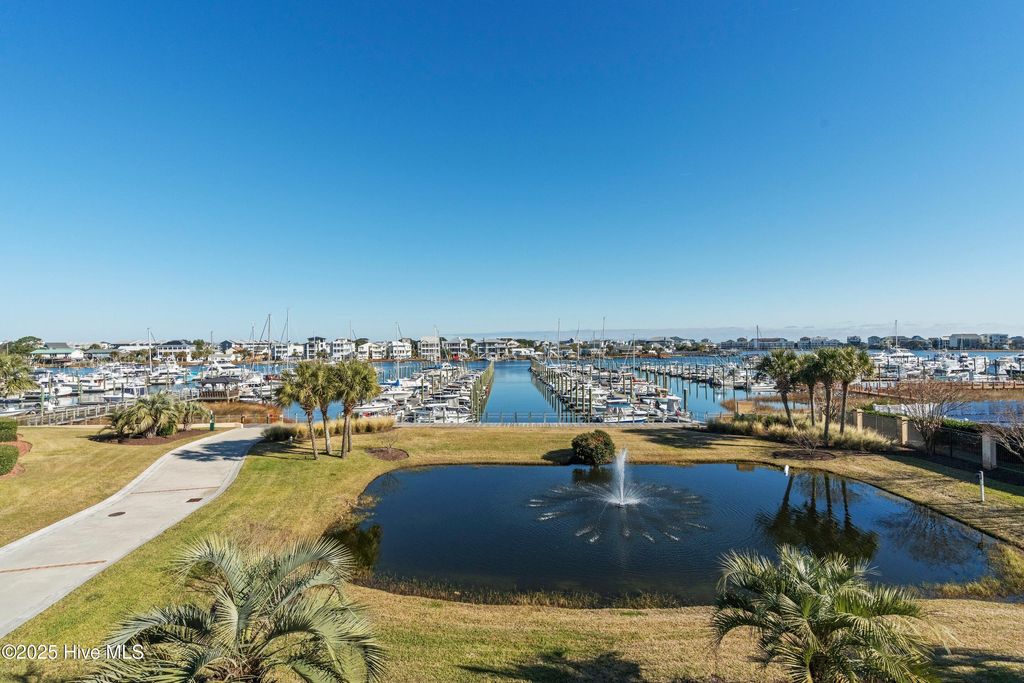 Luxurious WATERFRONT townhome with breathtaking water views and your very own 40 foot boat slip with finger piers on both sides! This is a chance of a lifetime to live in this resort style community overlooking the Marina and Yacht Basin and only minutes to the Intracoastal Waterway in your boat. Bring your water toys and play or relax in the pool and enjoy the beautiful clubhouse. Now let's step inside this amazing townhome. On the first floor there is a private bedroom with sliding doors leading to a pond and soothing fountain. There is also a 1 car garage to store your toys and golfcart. On the second floor there is an open floor that will just WOW you. The kitchen is a chef's dream, the dining room will seat plenty, the living room is huge with a fireplace and just stand and look out over the balcony to your forever views. The primary bedroom with a private balcony and 3rd bedroom are on the third floor. The many upgrades are new hardwood floors, countertops/backsplash, all new designer lighting, attic dehumidification system, 80 gallon hybrid water system, and a reverse osmosis water purification system. The fun will never stop when you live here. Enjoy the Carolina Beach Boardwalk, the Fort Fisher Aquarium, may restaurants to choose from, the beautiful beaches for long walks and of course, the sunsets.