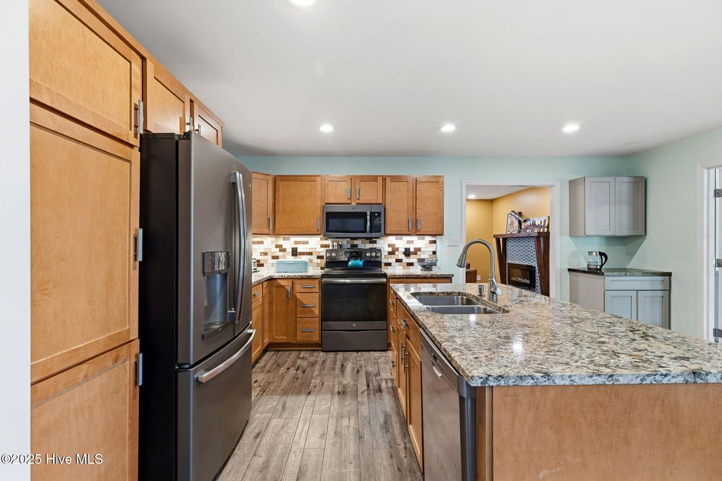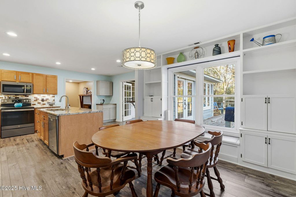 Located in a prime Wilmington location, this spacious home offers endless potential for the right buyer. Featuring 6 bedrooms and 3 full bathrooms, there is plenty of room to spread out, entertain, or accommodate multigenerational living.The home is filled with character, charm, and thoughtful upgrades throughout. The heart of the home includes an upgraded kitchen with modern appliances, LVP flooring, and custom built-ins. The inviting living room is equipped with surround sound and a custom electric fireplace, creating a warm and comfortable gathering space. A stunning sunroom with shiplap walls and a wood-paneled ceiling adds even more living space and natural light. Step outside to a private, beautifully landscaped backyard designed for entertaining, complete with a built-in bar, outdoor speaker system, multiple patios, and a deck perfect for hosting friends and family. With abundant space, unique features, and a desirable location, this home presents an excellent opportunity to create something truly special.