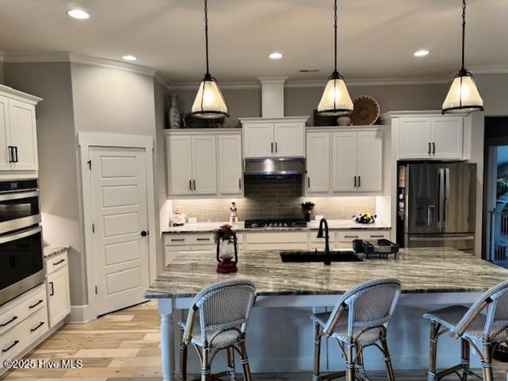 This beautiful home is in the highly desired Salters Haven neighborhood & marina is strategically located in the ''luxury custom home section''. This is an incredible home with everything you can ask for. Its approx. 3,060 sq ft, ranch style, 3 bath with possible 5 bedrooms. I have been fortunate to lease boat docks for the 5 years that I have been in Salters Haven. I currently have a 30' boat dock leased and paid thru April of 2026. There is a beautiful gourmet kitchen with beautiful marble counter tops boasting a huge center island, formal dining with a tray ceiling and a casual dining area with great views. Walk into your oversized master bedroom & bathroom with a gorgeous tray ceiling, custom no entry shower. There is an attached separate Laundry room off the master bathroom with a newly built walk in custom closet. The custom large back bedroom / office has a beautiful coffered ceiling over looking spectacular back yard. After a long day, relax in your huge living room over looking fireplace and large tv area and just above a beautiful coffered ceiling. There is a new 24 K Kohler full house generator, recently custom enclosed 4 season sunroom with Italian tile set in a herringbone pattern and 150mph rated slider. The sunroom comes with a AC/heat wall unit. Not to mention a recently custom designed pergola with professional metal roof and gutter system with pop ups, etc. Custom electrical on pergola and in ground electric for lighting and waterfall features for evening get togethers on the deck. Also gas & Electric was brought out for future fireplace, and jacuzzi or hot tub hook up. There is an Invisible fence for dog lovers, with the back yard fully fenced in with incredibly landscaping. The front yard has palm trees, exotic landscaping etc. with a 250 gallon submerged propane tank for your gourmet cooking and fireplace and a Culligan water softener system. Intracoastal access. A 5 star community, we would like to lease back to July 2026 if poss. Pre-qual