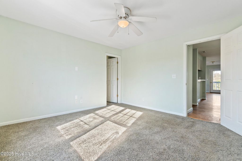 807 March Court, Unit E, is a 3-bedroom, 2-bath condominium located in the Cape Cottages community of Wilmington, NC. This 1,300 square foot condo offers a single-level layout with defined living spaces, a private balcony, and access to community amenities, all conveniently situated within city limits. The main living area features durable vinyl flooring, abundant natural light, and a fireplace that anchors the living room. The open flow connects the living room to the dining area and kitchen, creating a layout that supports everyday living and entertaining. The kitchen includes ample cabinet storage, laminate countertops, an in-kitchen laundry closet, and direct access to the dining area. The primary bedroom includes an en-suite bathroom and a walk-in closet, while two additional bedrooms provide flexibility for a variety of uses. Both bathrooms are full baths with tub and shower combinations. Ceiling fans, neutral finishes, and a straightforward floor plan make the space easy to personalize. Outside the covered balcony, offers additional outdoor space and a dedicated storage closet. The unit includes assigned parking and access to the community pool, maintained through the homeowners association. The unit is being sold as-is.This property is eligible under the Freddie Mac First Look Initiative through 1/17/2026.