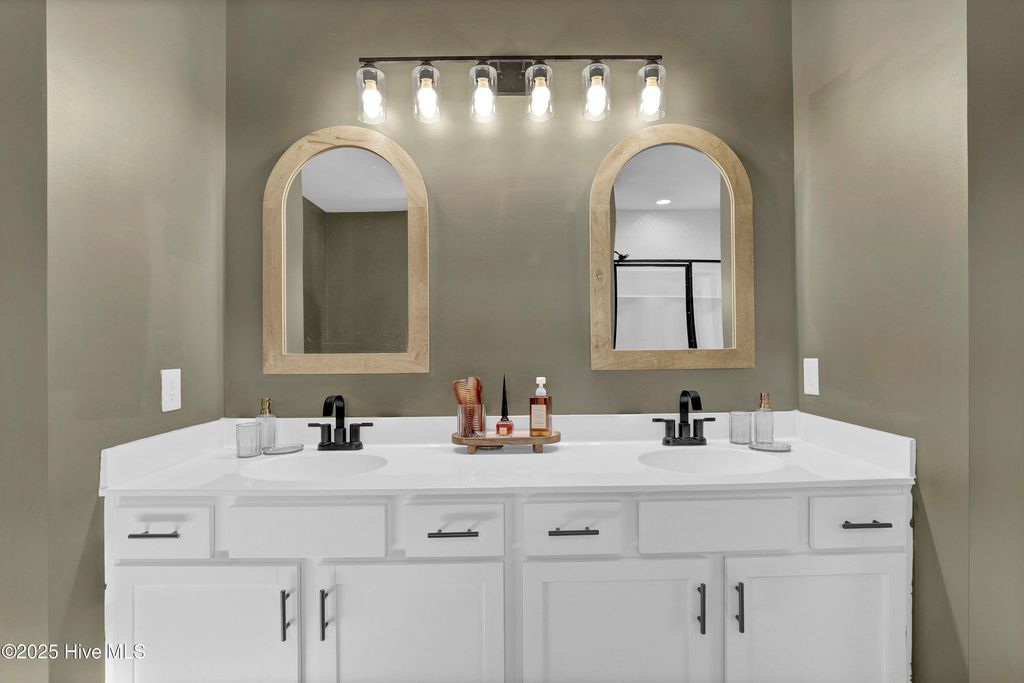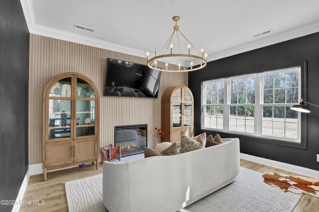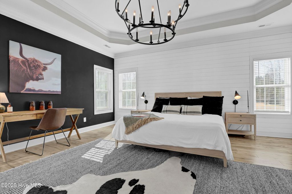 Simply the Best! Stunning 2024-built 5 bedroom 4.5 bath home with over 4200 heated sq. ft. and custom upgrades. The main level boast a primary suite with a large 12x11 walk in closet with custom shelving, a private office, formal dining with coffered ceilings and multiple living spaces with 2 electric fireplaces! Chef's kitchen showing abundant cabinetry, granite countertops, stainless appliances, and a large island ideal for entertaining or causal dining. Upstairs features a second primary suite, 3 additional bedrooms, a bonus room, and a second laundry closet. Luxury vinyl flooring throughout for ''carpet-free'' living, elegance and easy maintenance. Spacious .6 acre lot with cul de sac location ready for your personal landscaping touches. Community pool to open in Spring of 2026. Award winning Topsail School District, low HOA dues, minutes to Hampstead and easy access to I-40. This home truly has it all, space, style, and location!