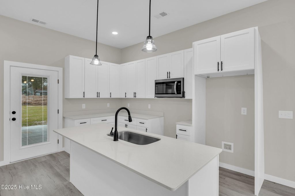 Welcome to your new home! This expertly designed residence has everything you have been looking for. Single story, three bedroom and two bathroom with a split floor plan and 10ft ceilings! Featuring the primary bedroom on one side and the second and third on the other. Open concept living with a huge kitchen island and beautiful countertops. The home is upgraded with modern fixtures and LVP flooring. Complete with a large covered rear patio and a two car garage. Enjoy quiet living while being in close proximity to shopping, beaches, and downtown Wilmington.