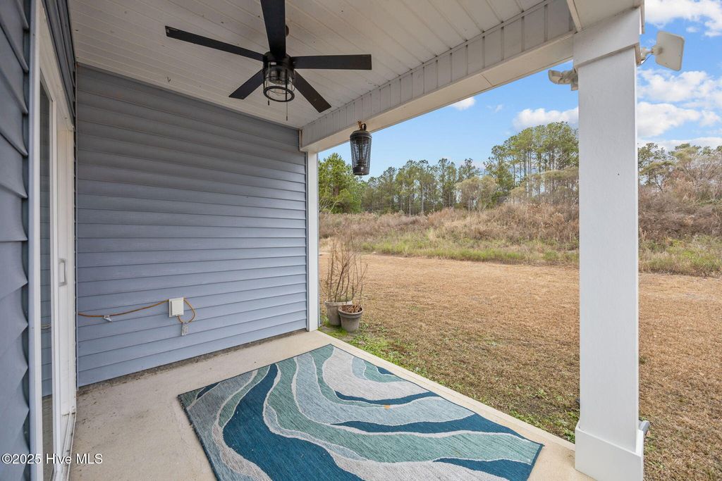 Set within the Avalon of the Carolinas community, this thoughtfully designed 4-bedroom home offers privacy, space, and comfort with no homes directly behind it. The popular Cali floor plan features 9-foot ceilings and durable LVP flooring throughout the main living areas. The primary suite is privately positioned at the back of the home and includes a generous walk-in closet and an en suite bath. Three additional bedrooms are located toward the front of the home, offering flexibility for guests, work-from-home needs, or additional living space. The kitchen is well-appointed with granite countertops, stainless steel appliances, and a large center island, opening seamlessly to the living and dining areas for everyday living or entertaining. Step outside to the covered back porch and enjoy the peaceful outdoor setting. A two-car garage and extended driveway offer plenty of parking. Located in a quiet, rural-style community just minutes from Oak Island, make this lovely home yours in the New Year!