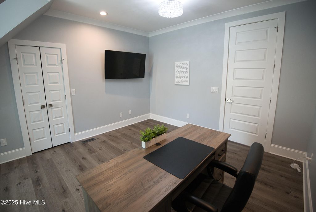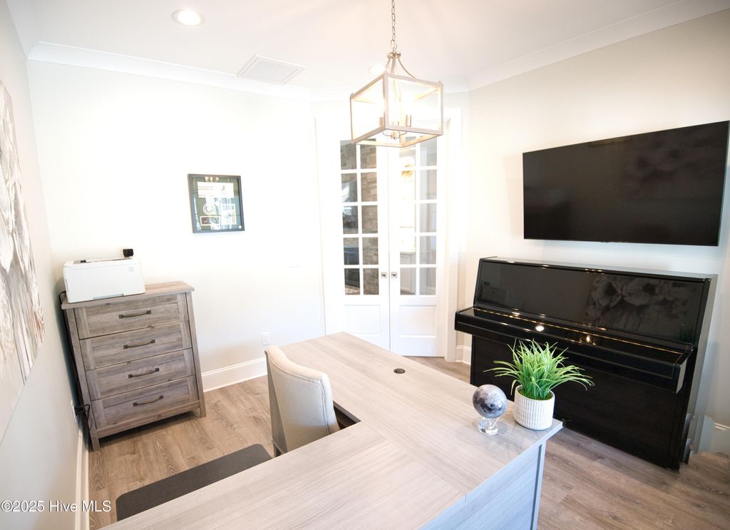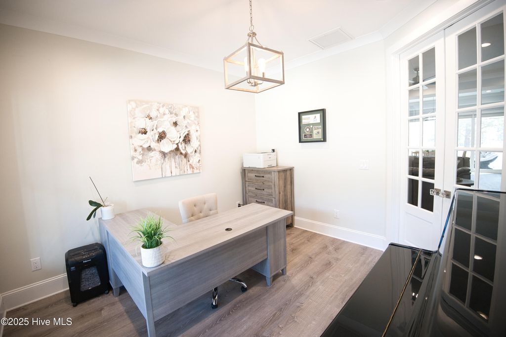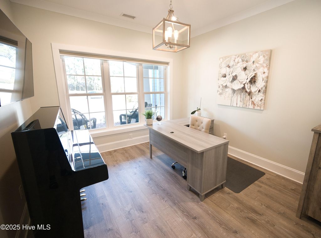 Better than new, this magnificent custom home is perfectly positioned on a stunning half-acre lot with golf course views in the ever-popular gated golf community of Crow Creek. Thoughtfully designed with upscale finishes and exceptional craftsmanship, this custom home offers luxury living at its finest. No expense was spared in this open concept 3 bedroom, plus Office and Bonus room home. The oversized THREE CAR GARAGE is almost 1000 SF and features epoxy floors, sink, is heated and cooled and even has future potential for a car lift. The extra wide & long driveway is an added bonus. There is a built-in whole home generator as well as a state-of-the-art HVAC system with both a heat pump and furnace. No expense was spared as you are greeted by the Tiffany Diamond double doors and the foyer welcomes you with Barrel Vault ceilings. The Chef's Kitchen is both beautiful and functional, featuring abundant custom cabinetry with deep drawers, a huge center kitchen island, pot filler, under cabinet lighting, backsplash, farmhouse sink, double convection ovens, custom wine rack & a spacious walk-in pantry. The Master Suite is offers generous space for multiple furniture arrangements, separate his & her custom closets with built-in drawer systems, and a Resort Spa inspired bathroom with a walk-in tiled shower and a separate soaking tub. The main living area centers around a stunning Stone fireplace with built-ins. The Master Bedroom, Guest bedroom, and Office are all conveniently located on the 1st floor. Upstairs offers another bedroom with huge closets which can be used as a 3rd Bedroom or even a 2nd Master Bedroom Suite. This additional flexible living space is ideal for guests, home gym or hobby space. Luxury LVP flooring flows throughout the entire home"”no carpet. Other Special features include a Laundry Room with extensive cabinetry, filtration system, & so much more. It would be difficult to replicate this home at this price. This exceptional home truly has it all!