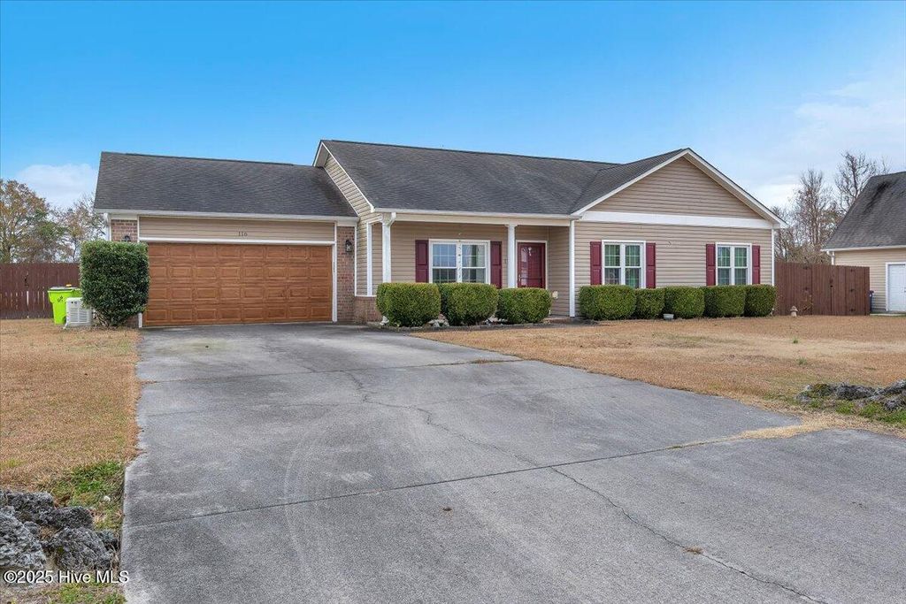 Welcome home to 116 Hardin Road in Maysville, NC"”a beautifully maintained 3-bedroom, 2-bath residence that is truly move-in ready. Step inside to find stylish laminate flooring throughout the main living areas, complemented by tile in the wet areas for easy maintenance and durability. The kitchen is a standout, featuring granite countertops, a classic tile backsplash, and stainless steel appliances, making it both functional and inviting for everyday living or entertaining. Each bedroom offers comfortable space, while the layout provides a seamless flow throughout the home. Outside, enjoy a large, privacy-fenced backyard, perfect for relaxing, entertaining, or letting pets play freely. Adding peace of mind, this home is equipped with a gas-powered whole-home generator, ensuring comfort and reliability year-round. Conveniently located and thoughtfully updated, this home is ready for its next owner"”don't miss your opportunity to make it yours!