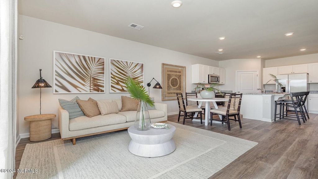 Welcome Brunswick Plantation! A gated community with 24 hours security, 27 hole Championship Golf Course on site (membership not included), 11,000 sq. ft. amenity center with meeting and activity rooms, fitness center, two pools (salted indoor and outdoor), indoor catering kitchen, outdoor grilling area, walk to restaurants onsite, multiple tennis and pickle ball courts. Close to shopping and dining in Calabash and the Myrtle Beach area in SC. Enjoy the laid back coastal lifestyle where all of your exterior maintenance is taken care of! A rare opportunity of a duplex being offered in Brunswick Plantation that also features an attached 1-car garage. Upon entry you are greeted with a very open layout. The split bedroom floor plan offers privacy when you have guests visiting you at the beach, along with functionality. The kitchen offers granite countertops, ample cabinets, a walk in pantry and stainless appliances Enjoy the coastal air on the covered back porch for your morning coffee or at the end of the day. 2'' faux wood blinds on standard windows. This is America's Smart Home! Ask an agent today about our industry leading smart home package that is standard in every home. *Photos are of a similar Belmont plan. (Home and community information, including pricing, included features, terms, availability and amenities, are subject to change prior to sale at any time without notice or obligation. Square footages are approximate. Pictures, photographs, colors, features, and sizes are for illustration purposes only and will vary from the homes as built. Equal housing opportunity builder.)