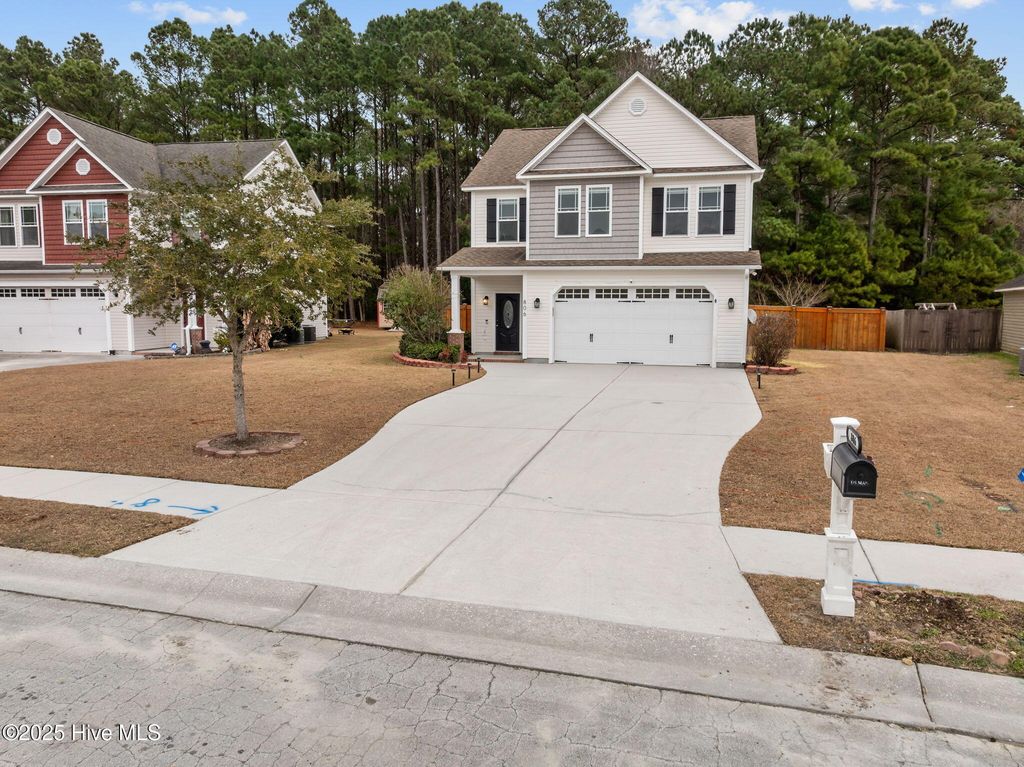 Welcome home to this beautifully maintained two-story residence located in the charming seaside town of Swansboro, North Carolina. Featuring four spacious bedrooms and two-and-a-half baths, this home offers a functional layout with all bedrooms conveniently located upstairs, providing privacy and comfort The main level highlights a bright and inviting dining area accented by beautiful bay windows, filling the space with natural light and creating an ideal setting for everyday meals or entertaining. The well-appointed kitchen features granite countertops, stainless steel appliances, and ample cabinetry, seamlessly connecting to the living areas. Upstairs, the primary owner's suite serves as a private retreat with a custom walk-in closet and full ensuite bath. Additional bedrooms provide flexibility for guests, family, or a home office. Enjoy outdoor living in the fully fenced backyard, complete with a large storage shed for additional storage, and the convenience of a two-car garage. Located in a no-HOA subdivision, this home offers freedom and flexibility rarely found.