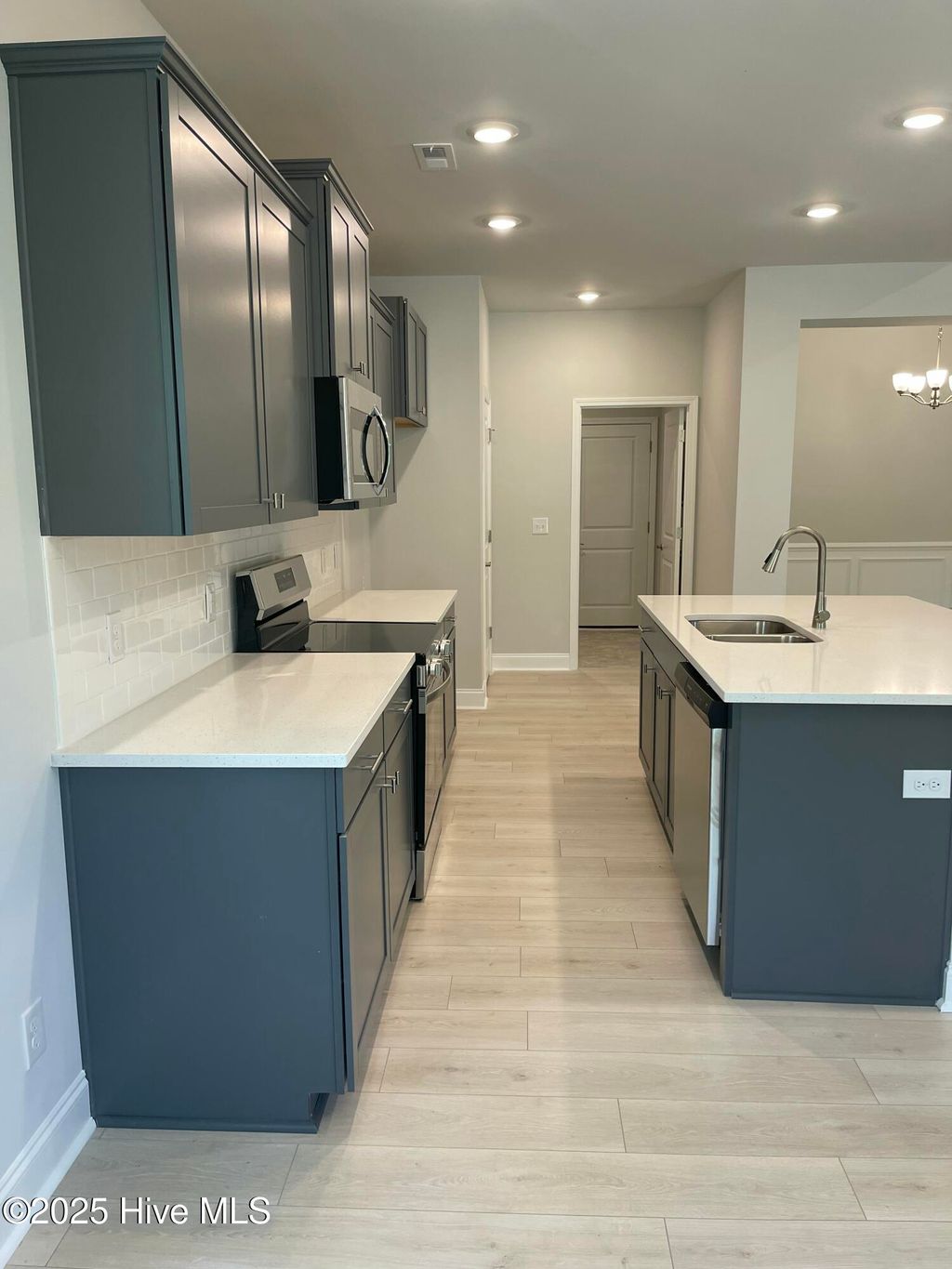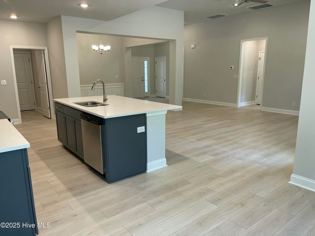 Welcome to Wood Creek, Leland's newest community by Adams Homes, where style, comfort, and value meet. This 1,709 sq ft, 3-bedroom, 2-bath new construction home features a bright open-concept layout with scratch- and water-resistant laminate wood flooring in the main living areas, plush carpet in the bedrooms, and easy-care vinyl flooring in the baths and laundry room. Interior highlights include an electric fireplace, wainscoting, crown molding, craftsman-style trim, and modern black fixtures and hardware throughout. The kitchen is beautifully appointed with white cabinetry, granite countertops, a white ceramic tile backsplash, stainless steel appliances, and a single-basin sink. The spacious primary suite offers a tray ceiling with crown molding, walk-in closet, soaking tub, and a separate walk-in shower, creating a true private retreat. Enjoy outdoor living on the covered back patio, perfect for relaxing or entertaining. Ideally located near Hwy 17 with quick access to Wilmington, shopping, parks, and area beaches. Only a $1,000 builder deposit required. Photos are representative only; actual home includes craftsman-style trim and modern black fixtures and hardware throughout.