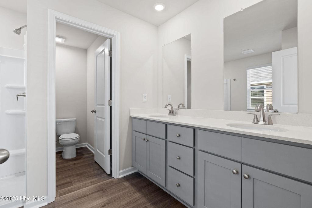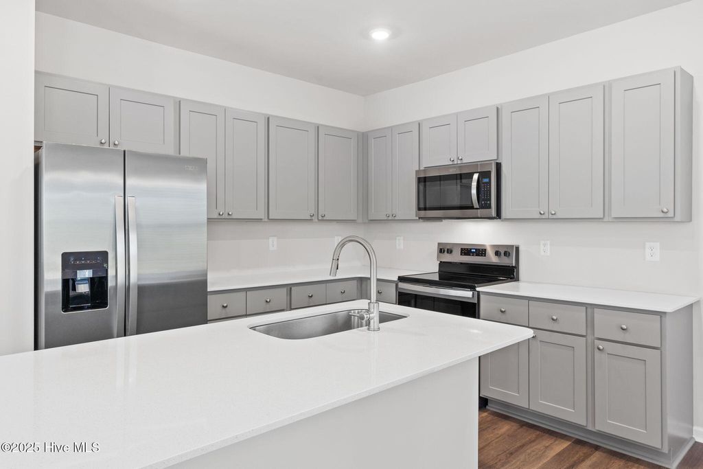 Welcome to The Garrett at Richmond Hills! Experience the perfect blend of charm, functionality, and modern living in The Garrett, a thoughtfully designed two-story home built for comfort and style. As you arrive, a welcoming front porch sets the tone for what awaits inside. Step through the entryway into a bright, dramatic foyer, where natural light and an open design create an inviting first impression. A centrally located staircase provides convenient access to the second floor while enhancing the home's architectural appeal. The main level is designed for seamless living and entertaining. Enjoy a spacious open-concept layout that connects the family room, dining area, and a modern kitchen featuring a generous island "” perfect for gatherings, casual meals, or weekend entertaining. A powder room on this level adds extra convenience for guests. Upstairs, discover a well-planned retreat designed to suit every lifestyle. Two secondary bedrooms share a thoughtfully designed bathroom with dual sinks, ideal for family or guests. A large storage closet and a centrally located laundry room add practicality to the second-floor layout. The highlight of the upper level is the luxurious primary suite, featuring an elegant tray ceiling that adds a touch of sophistication. The suite includes a spacious walk-in closet and a spa-inspired bathroom complete with dual sinks and a walk-in shower, creating a private sanctuary to unwind. With its functional floor plan, stylish finishes, and modern amenities, The Garrett offers everything you need to feel right at home.
