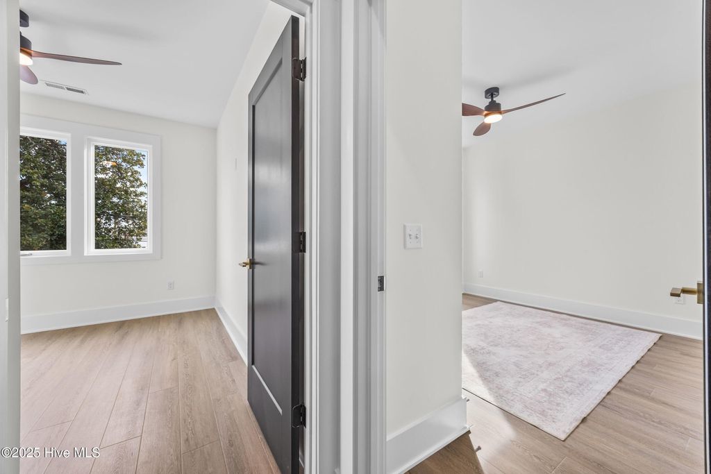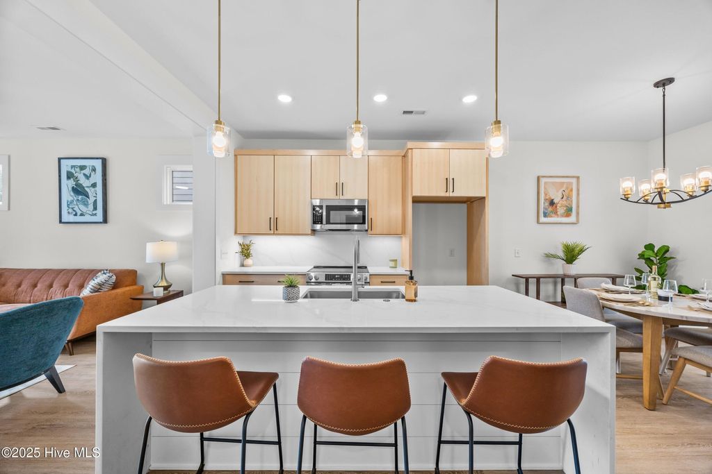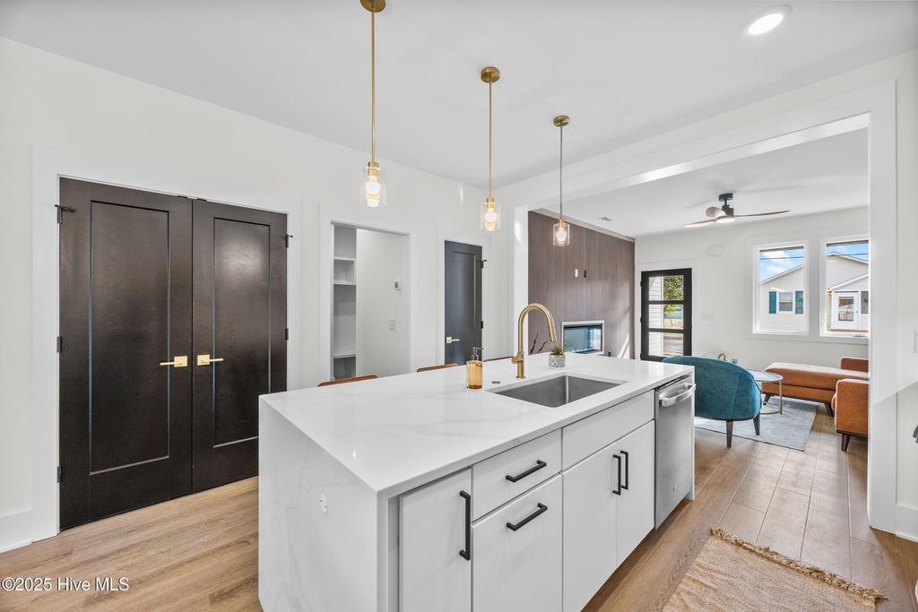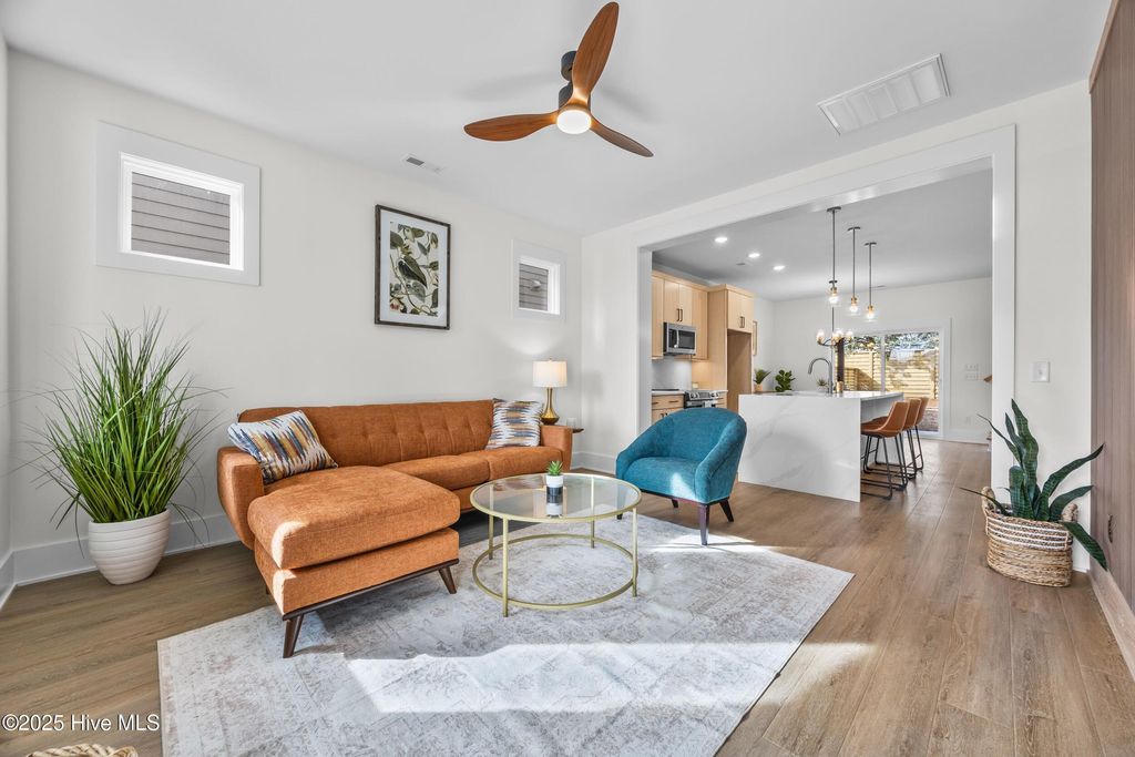 Up to $14,400 in Buyer Incentives! $10,000 seller credit + up to 1 percent lender credit (buyer's choice on how to apply) ****LAST HOME LEFT OUT OF THE 3 BUILT**** NEW CONSTRUCTION IN WILMINGTON'S CARGO DISTRICT"”JUST MINUTES FROM DOWNTOWN AND THE RIVERWALK. This 3-bedroom, 2.5-bath home delivers modern design with a layout that lives well. The open-concept main level features recessed lighting and a sleek flush fireplace with a custom feature wall, creating a comfortable yet refined living space. The kitchen is thoughtfully finished with waterfall quartz countertops, solid wood cabinetry, and matte black hardware"”balancing visual impact with everyday functionality. Upstairs, 9-foot ceilings enhance the light-filled feel and frame a flexible nook ideal for a home office, study area, or additional living space. The primary suite includes a spacious walk-in closet and a spa-inspired bath with a rainfall and wall-mounted shower system complemented by curated tile selections. Additional features include owner lockout storage beneath the stairs"”ideal for second-home use or short-term rental flexibility"”and a private backyard shaded by mature oak and pecan trees. A smart floor plan, quality finishes, and low-maintenance new construction make this home a standout opportunity in a highly walkable location.