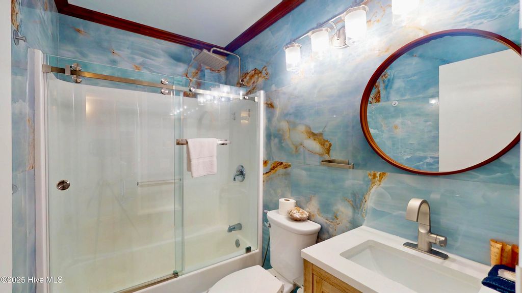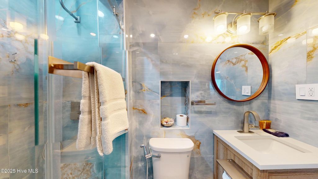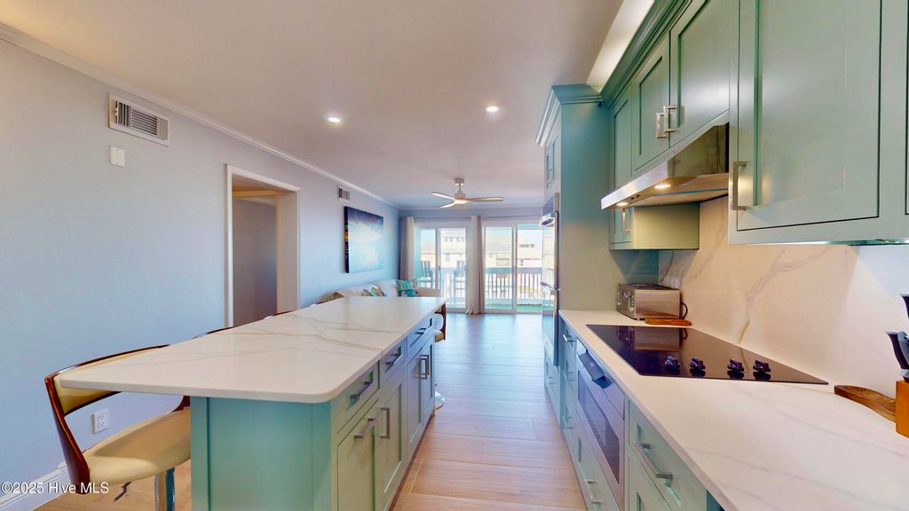 Oceanfront Elegance! Newly Renovated Top-Floor Condo - An exceptional top-floor oceanfront residence perfectly positioned along the coveted North End of Carolina Beach. Renovated in 2025 with a sophisticated coastal aesthetic, this retreat captures sweeping panoramic views and offers direct shoreline access just steps below. Thoughtfully curated and sold fully furnished, it is ready to enjoy from day one.Inside, a continuous expanse of top-grade wood-look tile flows throughout the living spaces, creating a seamless, elevated feel. The only exception is the two baths, each finished in striking blue marble on both the floors and walls, delivering a truly spa-inspired experience.Expansive glass sliders open to a private oceanfront terrace, blurring the line between indoor comfort and outdoor coastal living. The kitchen is as beautiful as it is functional, showcasing custom-built cabinetry, quartz countertops, and new premium appliances, thoughtfully designed for effortless entertaining.Elegant marble bathrooms, serene bedrooms with generous storage, and a primary suite framed by ocean views all contribute to the home's refined ambiance.Residents enjoy access to a resort-style saltwater pool, along with meticulously maintained grounds and private beach access. Recent building improvements "” including a new roof (2020) and fresh exterior repaint (2021) "” provide added peace of mind.Situated between the Carolina Beach Pier and the Boardwalk, this address offers a rare blend of tranquility and convenience, with restaurants, entertainment, and coastal attractions moments away.Equally suited as a refined private escape, second home, or luxury income-producing investment, Beach Nest delivers a curated oceanfront lifestyle. Rental history and projections available upon request.