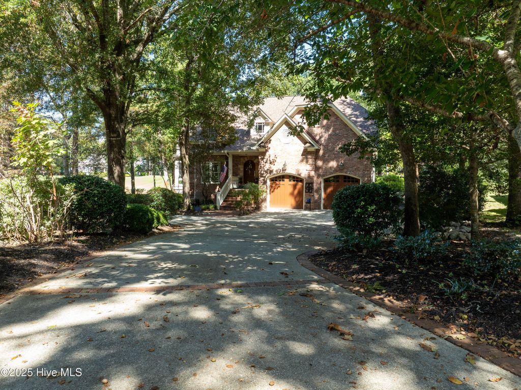 Privately nestled among mature trees with pond views and views of the 2nd green and 3rd fairway, this custom-built 4-bedroom, 4.5-bath brick home offers exceptional privacy and timeless design in the sought-after Porters Neck Plantation. Spanning over 3,700 sq ft, the thoughtfully designed floor plan features a primary suite on the main level and three bedrooms with three full baths upstairs, providing excellent separation of space. Elegant architectural details and quality craftsmanship are evident throughout. A sunroom offering complete privacy and a deck off an upstairs bedroom enhance the home's connection to its natural surroundings. Expansive living areas flow seamlessly outdoors to a private backyard oasis framed by wooded tranquility and peaceful water and fairway views. Additional highlights include a whole-house generator, reverse osmosis system, encapsulated crawlspace with dehumidifier, and an active termite bond for added peace of mind. Residents enjoy an exceptional lifestyle with access to optional golf, tennis, fitness, and swimming facilities, along with a vibrant clubhouse and community activities"”just minutes from shopping, dining, and the Intracoastal Waterway.