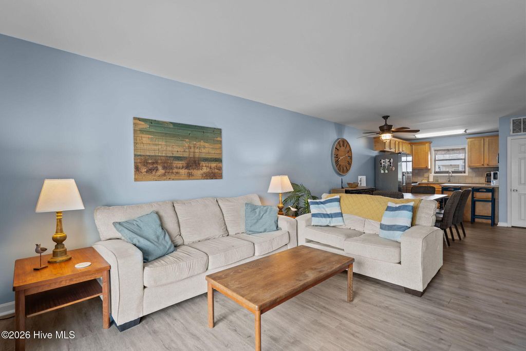 This inviting two-bedroom, two-full bath beach condo is now available, offering a wonderful blend of comfort and coastal living! Situated just steps from the pristine white sands of Carolina Beach, this property creates a peaceful and relaxing beachside escape. The generous living area is bright and welcoming, designed for effortless entertaining with ample seating and abundant natural light. It flows seamlessly into the well-appointed kitchen, showcasing stainless-steel appliances, granite countertops, and plenty of space for preparing meals and hosting gatherings. New LVP flooring spans the main living areas, enhancing the condo with modern style and long-lasting durability. Outdoor living shines on the oversized balcony, accessible from both the primary bedroom and living room, where refreshing ocean breezes and scenic views can be enjoyed with a beverage or snack. A second rear balcony overlooks the in-ground pool and stunning sunsets over the canal, providing privacy and serenity. Two oversized storage closets offer added convenience and ample room for beach and pool essentials/toys. Well-suited as a vacation rental, investment property, or primary residence, this condo offers excellent short-term rental income potential in a highly desirable beachside location. Offered fully furnished, it is ready for immediate enjoyment or rental use. Just a short walk to the popular boardwalk, local restaurants, and entertainment, this prime location continues to attract visitors and owners alike, making it a strong opportunity for both lifestyle and investment. **Unit on pace to net 30K+ via short term rental (vacation rentals)**