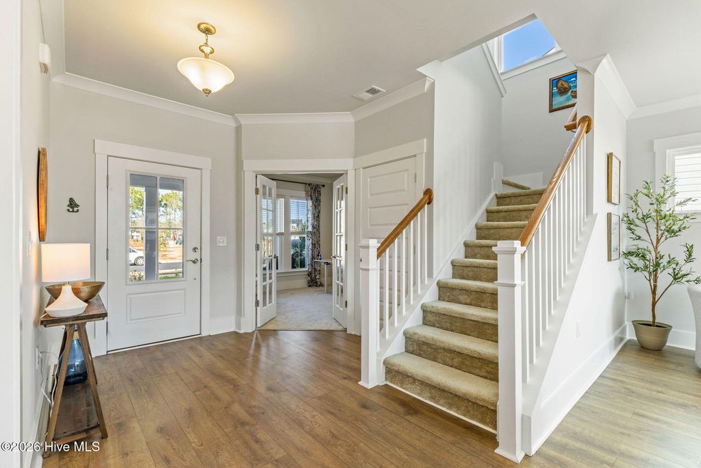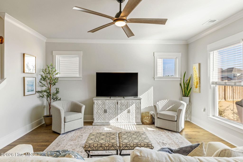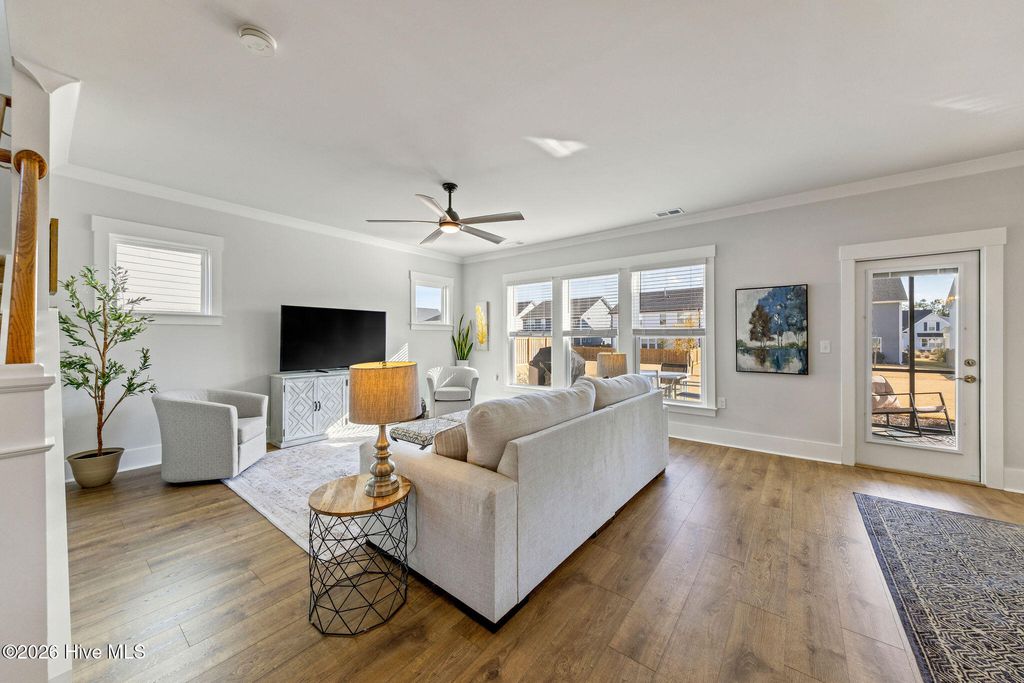 Location truly sets this home apart. Situated directly across from a community park with a playground, it offers open views, easy access, and a front-row seat to neighborhood life"”creating a setting that feels both peaceful and connected. Step inside to a light-filled main living area highlighted by beautiful Craftsman-style trim and crown molding, with thoughtful upgrades found throughout the home. The bright kitchen is a true centerpiece, featuring quartz countertops, upgraded cabinetry, a gas cooktop with vented hood, and a pantry. A Butler's pantry adds both function and style, ideal for entertaining, extra storage, or even an office nook. The primary suite is thoughtfully designed with crown molding, a spacious walk-in closet, and a spa-like bath complete with a walk-in shower and private water closet. Two additional bedrooms and a versatile bonus room complete the upstairs. A dedicated office near the front entry provides the perfect work-from-home space or flex room, while the open living areas flow effortlessly for everyday living and entertaining. Step outside to enjoy a large backyard, screened porch, and patio creating the perfect spot for relaxing mornings or evening gatherings. All appliances convey. Move-in ready! Enjoy the active RiverLights lifestyle, now featuring two amenity centers. Residents have access to a wide range of amenities, including clubhouses, fitness centers, outdoor saltwater pools, playgrounds, parks, dog parks, and pickleball courts. The neighborhood also offers scenic trails, sidewalks, and streetlights throughout, along with a variety of clubs and activities for all interests. (HOA: 6-month rental minimum.) This home is a MUST see!