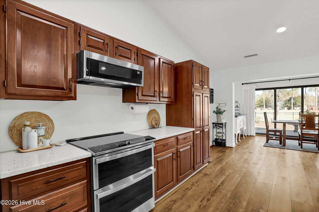 Immaculate GOLF-COURSE FRONT RANCH on the stately ''SOUTH BELVEDERE'' side of Belvedere Plantation, w/ clear views of the 15th-GREEN and FAIRWAY! The sellers truly made this a FOREVER-HOME, and turn-key for the next owners' enjoyment! Boasting all 1ST-FLOOR LIVING, split-floorplan, whole-home GENERATOR and Kinetico water softener/filtration system, RENOVATED KITCHEN, updated bathrooms, NEWER LVP flooring, TANKLESS propane water heater, 12X20 out-building w/ 9X7 roll-up door, circle driveway w/ PULL-THROUGH GARAGE, premium doors/windows, STEP-IN SHOWER, 12X9 workshop in garage, JOHN DEERE Z325E ZTrak Zero-Turn Mower (2023), formal dining area w/ room for large table, and more!! 12-Miles to SURF CITY/TOPSAIL ISLAND BEACHES, PLUS 1-mile to IRONCLAD GOLF-COURSE/Driving Range, and 3-miles to OLDE POINT COUNTRY CLUB/GOLF-COURSE!