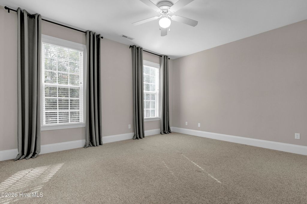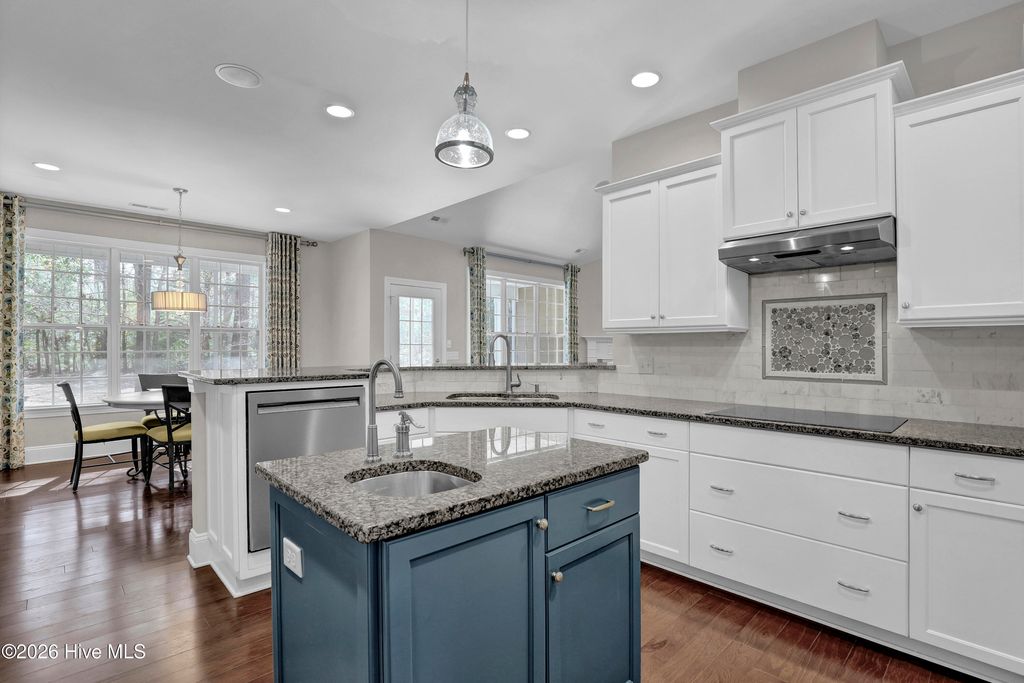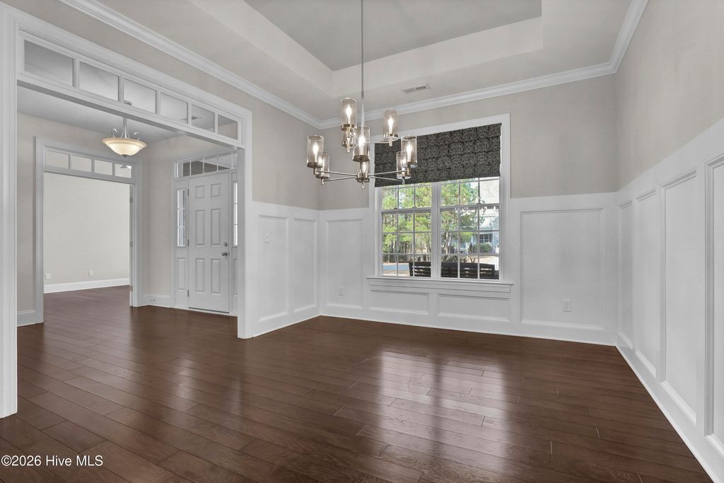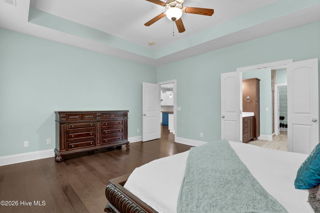 Welcome to this enchanted southern gem, situated in a cul-de-sac of a gated community in the heart of the coastal town of Hampstead. On your arrival, you can appreciate the extended driveway space and manicured landscaping which furthermore highlights the aesthetic appeal. As you enter the large foyer, you will immediately admire beautifully engineered hardwood floors and rich custom trim work and stunning transoms that will follow you on every step. On your right is situated an office with French glass doors and a vaulted ceiling and next to the office is a coat closet. On your left is a formal dining room with a tray ceiling and tall wainscoting awaiting its new owners to host their next holiday meals. A large and bright living room welcomes you and feels as though it was made for cozy evenings around a fireplace with a nice glass of wine, reading your favorite author, playing family games, conducting deep conversations or just watching movies. The open concept connects the living room with the gourmet kitchen which offers custom-built executive cabinetry which provides a wealth of storage space, glistening granite counter-tops, stainless-steel appliances; to include an elevated dishwasher for ease of loading, a working island with a prep sink, a pantry and a breakfast nook. A private Master Suite includes a tall tray ceiling, a double vanity with a storage linen cabinet, a custom tiled shower, a garden tub and a spacious walk-in closet. On the opposite side of the home, you can explore a second Master Suite with a double vanity and a shower/tub combo. Two spare bedrooms share a full bathroom and a linen closet. A large laundry room offers a sink, a counter-top for folding laundry and tons of storage cabinets, as well as a utility closet. Upstairs is located a bonus room with a full bathroom that can be used as fifth bedroom or a family room or a man cave. Let your imagination run wild. Enjoy your Southern tea on a screened-in porch with a custom tiled floor while overlooking this private piece of paradise. Invite your friends over to spend some time at an already established firepit, roast marshmallows, grill some Carolina BBQ or do some handywork in your oversized garage with a storage room or just get wild with your gardening skills. Looking for more fun and activities? Whether you decide to gather with neighbors at the community picnic area and basketball court or grab your boat at the community boat storage situated right behind the house and do some rip'n & grip'n, or hit a ball on some local golf courses or take a short drive and cross the bridge to Topsail island with highly rated beaches to relax and simply bask in the sun. This property is Southern Living at its finest! The absolutely amazing location of this property is another attractive feature to consider. Situated along the sparkling Intracoastal Waterway, with a short commute to the fabulous Kiwanis Park, highly rated schools, shopping, restaurants, many golf courses, ICW access, Topsail Island and Wrightsville beaches, and the city of Wilmington with a world class University, a tremendously growing network of businesses, and a historic river district. The home also features a water purification system, and the sellers are offering a one-year home warranty.