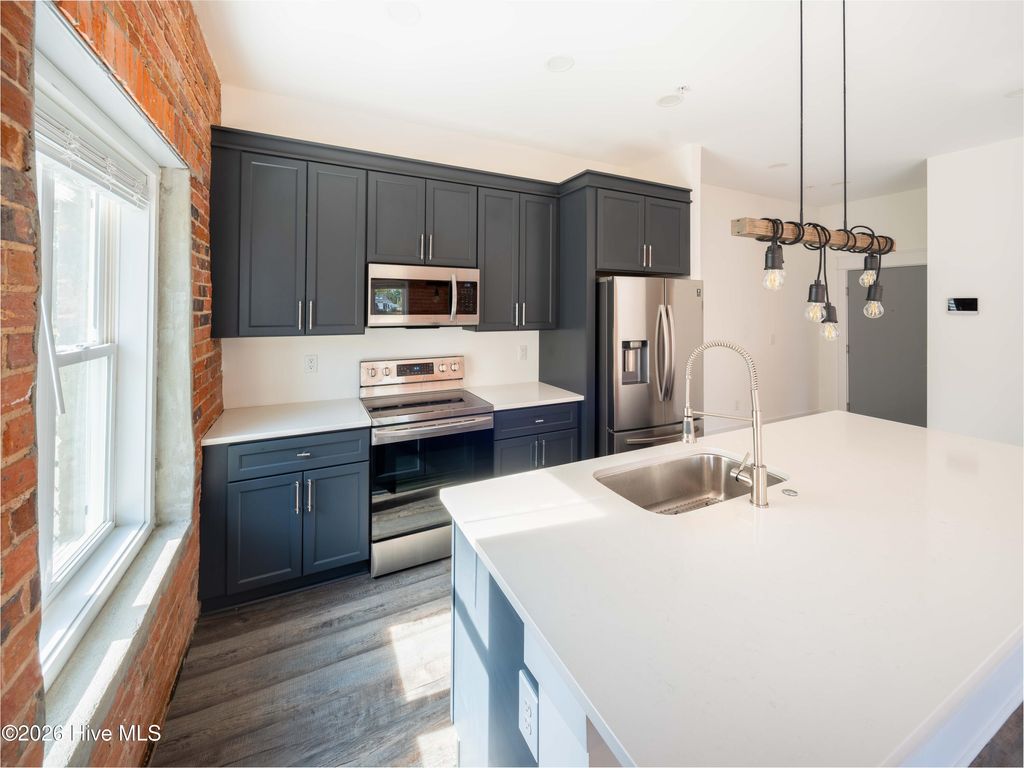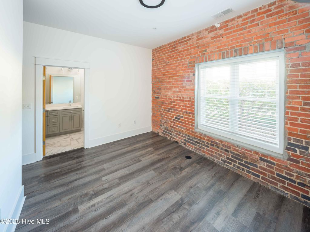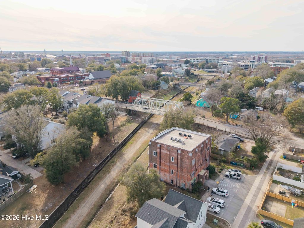 Unique Opportunity to own a piece of Wilmington history with Iconic Views! The Indie Ice Lofts were created 5 years ago from a former Icehouse, adjacent to the planned Rail Trail and next to the iconic One Tree Hill bridge. This first floor, 2 bedroom, 2 bath unit features high ceilings, exposed brick, and an open-concept kitchen and living area. This is the first unit with a patio to come on the market since original sales. The kitchen offers quartz countertops, stainless steel appliances and 42'' cabinets.The primary suite offers a generous walk-in closet and a bathroom with double sinks and an elegant, large tile bath/shower with tempered glass door. Just outside your front door, there is a convenient closet to house the heating system with plenty of storage space for your beach gear and golf clubs! The video entry system gives a level of security and convenience you have come to expect. The unit has been very lightly lived-in and has been completely repainted prior to being listed for sale. Truly move in ready! Located in the Brooklyn Arts District, which offers a huge range of dining, nightlife and entertainment, you are a short stroll from the River Walk and all that the historic district has to offer. HOA dues include water and sewer, trash and recycling, pest treatment, maintenance of the exterior and interior hallways of the building, security system monitoring and last but by no means least, Spectrum Internet and Cable! This unit has an excellent rental history and the building is pet friendly. If you are looking for something truly unique with a splash of fun, this may just be for you!