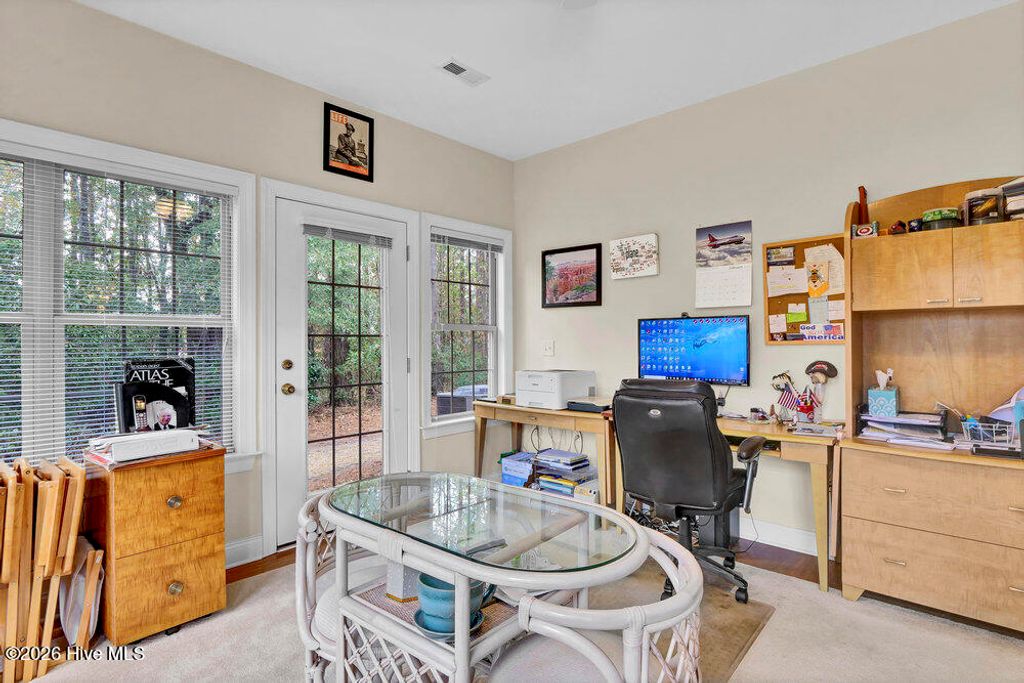 This one-story end-unit townhome in Fairfield Park offers a comfortable, low-maintenance lifestyle with convenient access to Midtown and Downtown Wilmington, as well as Carolina Beach. A two-car garage and a low-maintenance brick exterior provide practical benefits, while HOA dues cover exterior upkeep and landscaping, making daily living easier. Inside, the home features a traditional layout that includes a formal dining room and a well-designed horseshoe kitchen with a pantry. Tile flooring in the kitchen and bathrooms adds durability, and bamboo flooring extends throughout the main living areas and bedrooms, creating a cohesive, inviting feel. The flexible floor plan includes 2 to 3 bedrooms, with the third room functioning well as a sunroom, den, home office, or hobby space thanks to its ample natural light and dedicated closet. The primary suite is thoughtfully designed with two walk-in closets, a walk-in shower, and private access to the back yard, offering both comfort and convenience. Notable updates include a roof replacement in 2023 and an HVAC system that is approximately 4-5 years old, providing added peace of mind. Residents of Fairfield Park enjoy a range of neighborhood amenities, including a community pool, clubhouse, tennis and pickleball courts, and sidewalks that make it easy to enjoy the outdoors. With its practical layout, recent updates, and access to community features, this townhome offers a well-rounded living experience in one of Wilmington's most appealing locations.