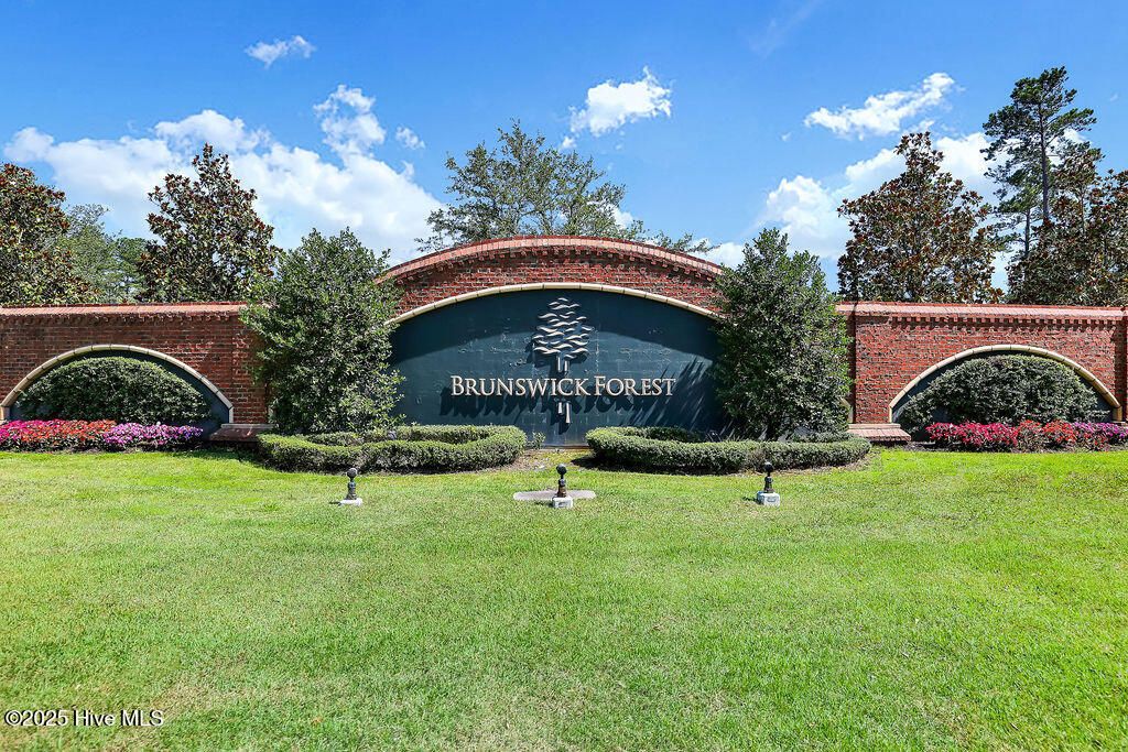 Quality & style combine with this home in Brunswick Forest. This customized home by Trusst Builder Group offers 3 bedrooms, 3 bathrooms, an office, and a bonus room/4th bedroom. Situated on 0.47 acres with splendid views of mature landscaping and natural green space. Attention to detail is found throughout including hardwood floors, trey & coffered ceilings, and an extended garage. The chef's kitchen features granite counters, bar height seating, white cabinetry with a corner glass door cabinet, natural gas cooktop, wall oven, and pantry cabinets. Step into the peaceful primary suite with ceiling fan, wall niche, and two closets. Primary bathroom has separate vanities, and tiled shower with a frameless glass door. The open living room is complete with a fireplace with tiled surround, built-in bookcase & cabinets, and an elegant dry bar with glass front cabinetry. French doors lead you into the office with its coffered ceiling & full-length windows. Two additional bedrooms have ceiling fans with lights and double door closets. Second floor bonus room/4th bedroom has a dedicated bathroom and attic storage is accessed via the closet. Entertaining is a breeze with a glassed-in porch and outdoor back patio. A well-appointed laundry room includes a utility sink with white upper/lower cabinetry. In the 2-car attached garage is a storage closet, side utility door, utility sink, and epoxy painted floor. Landscaping in this neighborhood is maintained by the homeowner. A one-year 2-10 home warranty is included for peace of mind! Features of Brunswick Forest include: three outdoor & one indoor pools, hot-tub, Fitness & Wellness Center, two cardio/weight rooms, tennis/pickleball/basketball courts, Hammock Lake, walking trails, parks, playground, dog park, and meeting rooms. Cape Fear National Golf Course on site, membership required. Only a short ride to downtown Wilmington or area beaches.