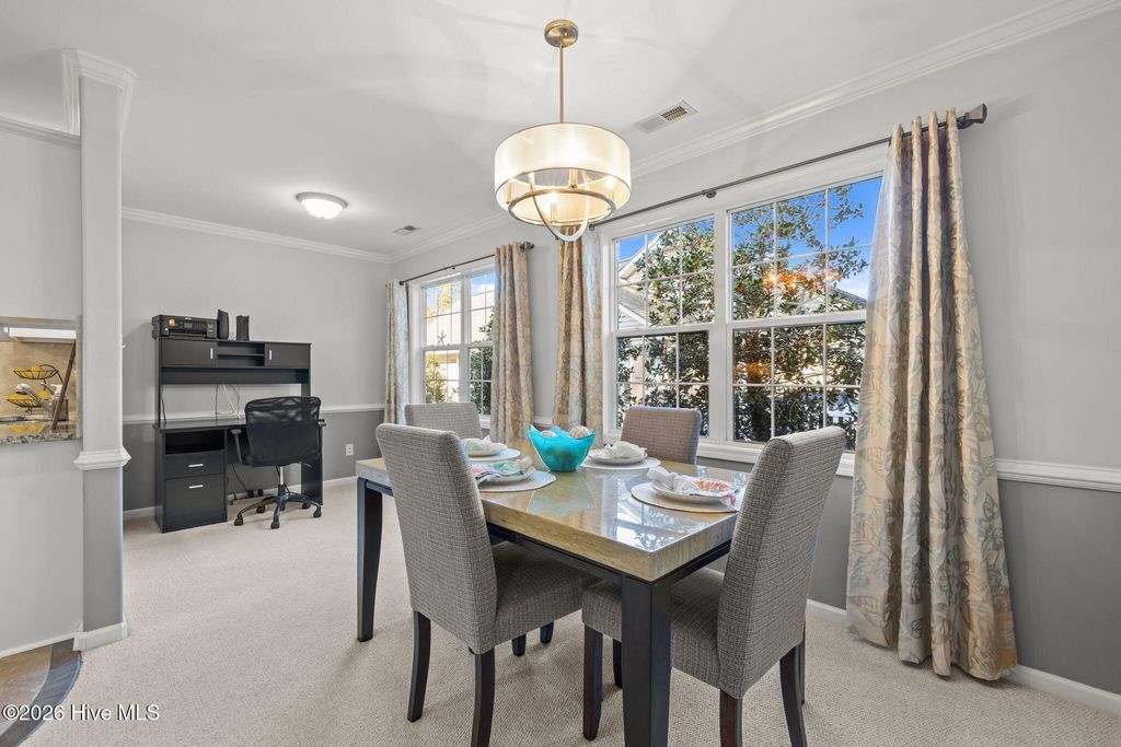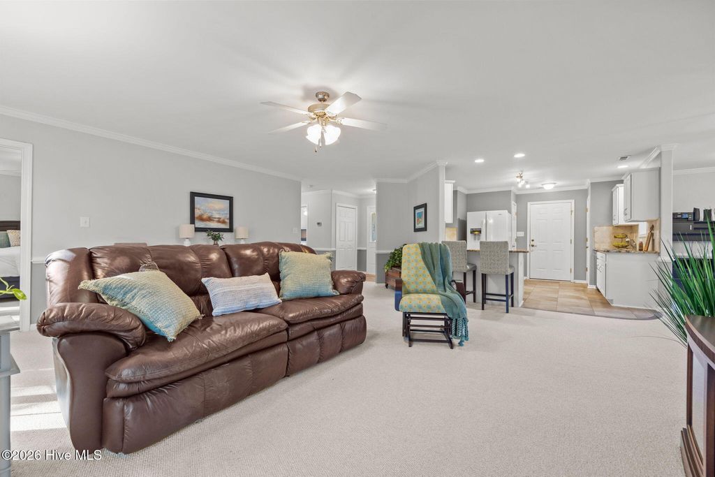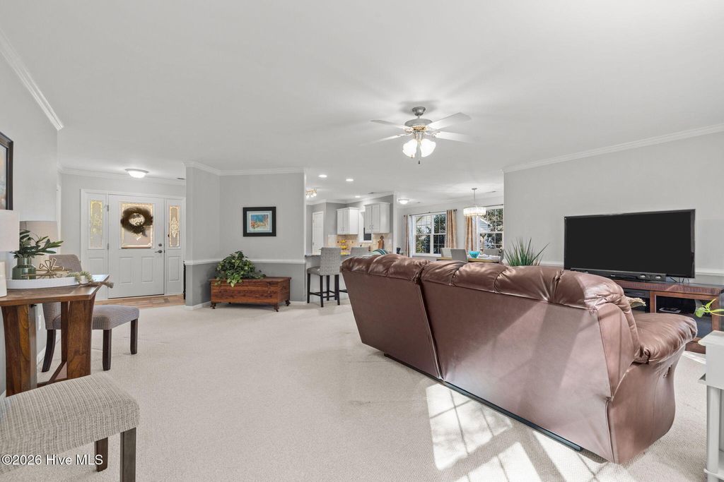 Enjoy easy, one-level living in The Villages of Swansboro, a welcoming 55+ community designed for low-maintenance living. This well-cared-for 2-bedroom home offers a bright, open-concept layout with several owner upgrades throughout. The kitchen features granite countertops and tile flooring (2012), along with a new range and dishwasher (2025) and garbage disposal replaced in 2022. The primary suite includes an updated bath with a nicely tiled shower and granite countertops. Crown molding and chair rail add a touch of character to the main living area, and tile flooring continues through the entryway, kitchen, and bathrooms. All homes in the community are condominiums, with HOA-provided common area maintenance for a truly carefree lifestyle. NOTE: A new roof is scheduled for 2026 and will be installed by the HOA, and the seller will pay the special assessment in full at settlement. ***PLEASE NOTE: that square footage has been measured by a professional appraiser and has been prepared per the bylaws with measurements from the inside walls, not the external walls. This is in line with the bylaws and differs from measurements reflected in tax records.