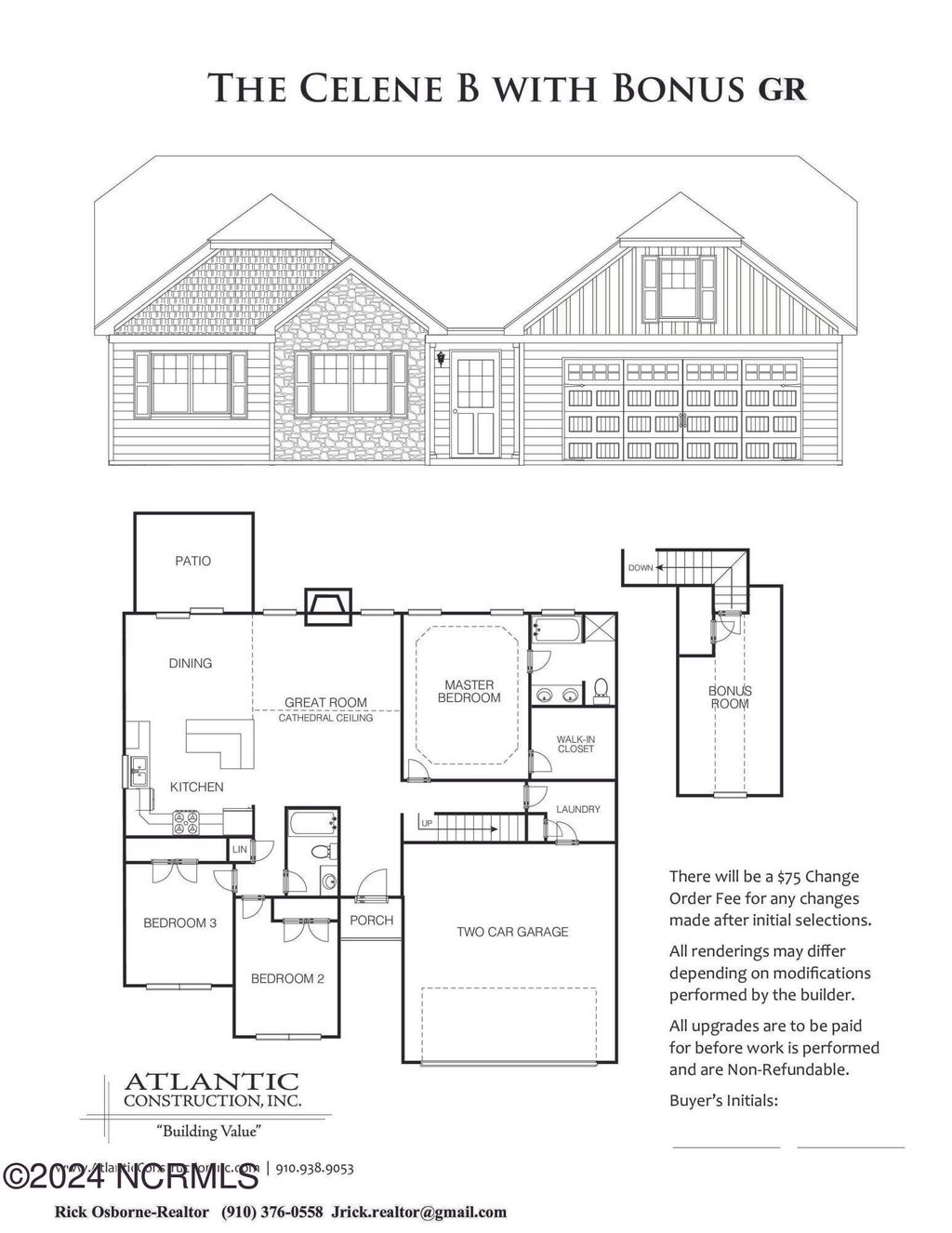 SELLER IS OFFERING $3,000 ''USE AS YOU CHOOSE'' PLUS ADDITIONAL LENDER CREDIT OF 1 PERCENT OF LOAN AMOUNT IA AVAILABLE WITH PREFERRED LENDER. Speak listing agent for more info. ***Home is in the PERMIT stage*** Introducing the Celene with a Bonus! This 1,796 heated sq ft home has all of the space & comfort you've been looking for! This home features 3 bedrooms as well as a bonus room perfect for an office space or a family that homeschools! The primary bedroom features a vaulted ceiling & walk in closet. Entering the primary bathroom will truly make you want to relax after a long day! With double vanity sinks, a walk in shower & separate soaker tub, this room gives you calm & relaxing energy. The spacious kitchen is the heart of this home! It includes the perfect amount of cabinet & counter space. Featuring an open floor plan, this home is a dream for someone that loves to entertain! As you step into the living room you will fall in love with the cathedral ceiling! Located in the peaceful neighborhood of Vista Cay Village, will allow you to enjoy country living at its best!! This neighborhood is conveniently located close to everything in Onslow county along with the best fishing, community events, shopping and mouth watering foods available just minutes away! ***These are similar photos and color selections may vary.***