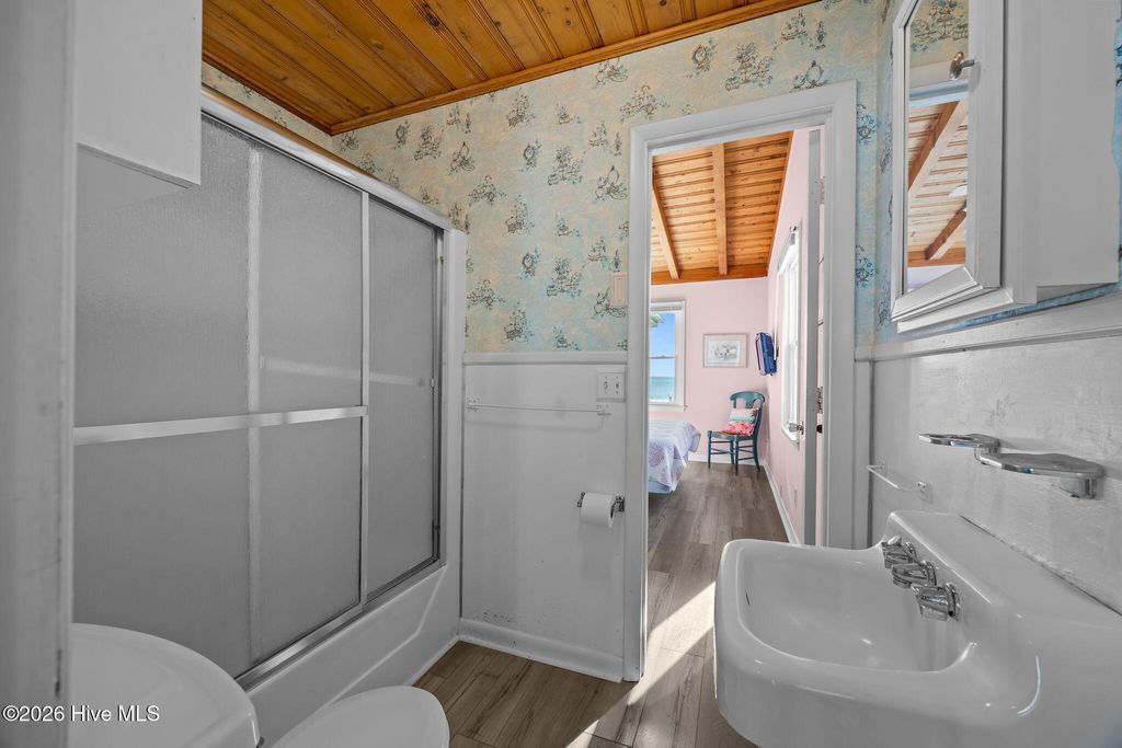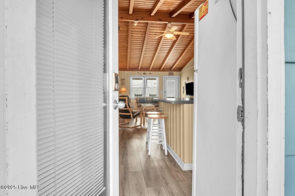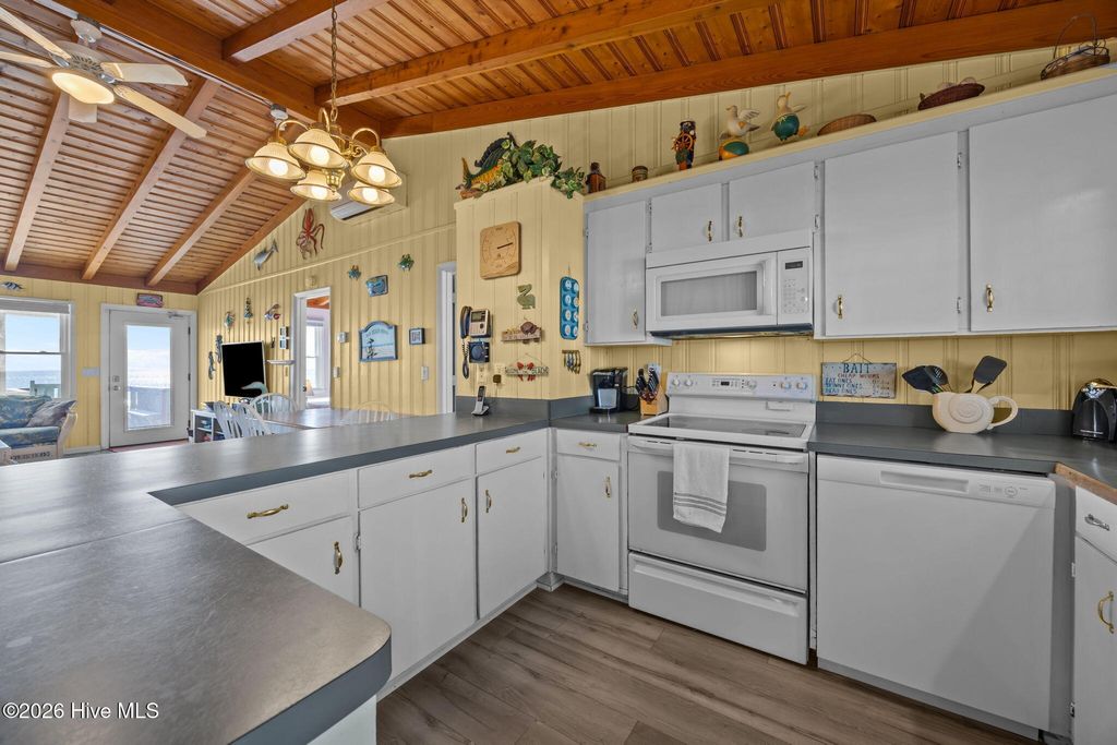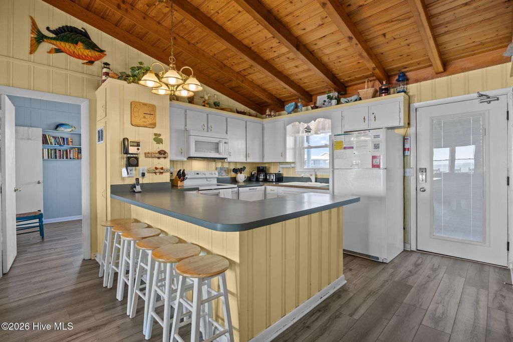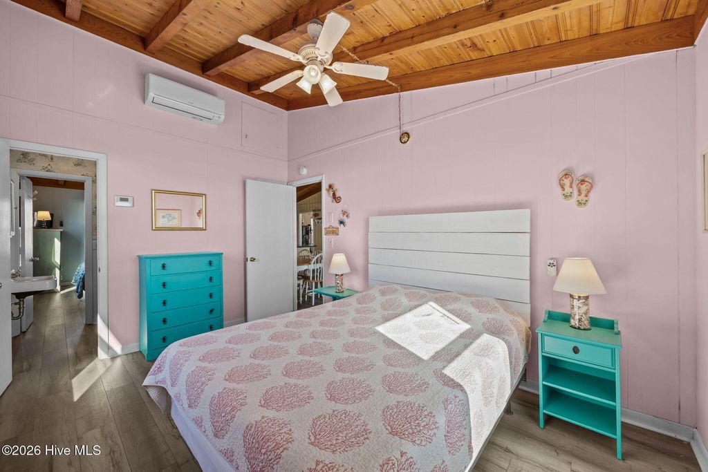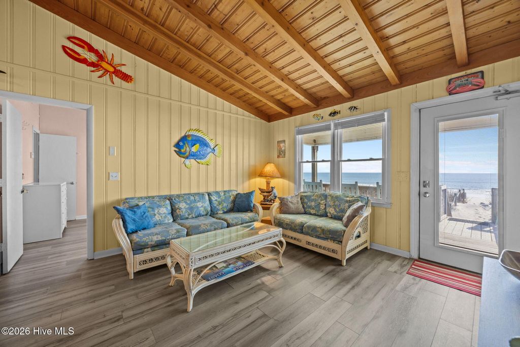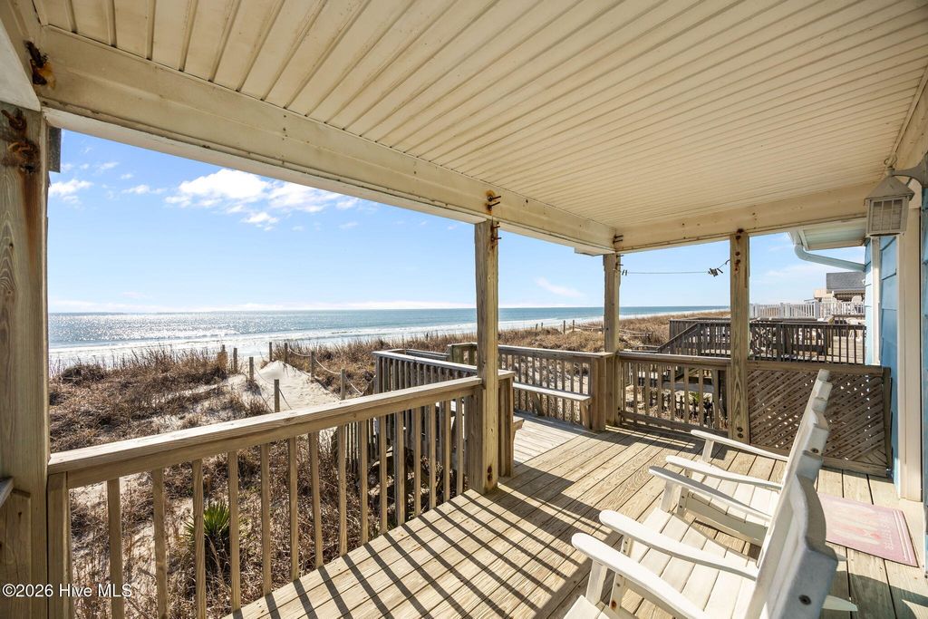 This classic oceanfront 4 bedroom, 2 bath cottage pairs the wistful wisp of nostalgia with modern day coastal charm and amenities. The exposed ceiling beams and wood panels pop against crisp white trim and vibrant hues. The practical H beach floor plan of yesteryear continues to be a beach house favorite today, with 2 generous sized bedrooms and one bathroom on each side, centered by an open kitchen and living area with ocean side porch and views of plenty. Mini split Hvac allows everyone to maintain their cool. You have classic Long Beach meeting modern day with Wifi washer/dryer, a generator interlock for portable generator & more-just ask to see the list! Envision seafood feasts, game nights, afternoon naps and late night talks , all in tune with the rhythm of the sea. Are you ready for beach life? This one is furnished and move in ready- keep for yourself or continue to use for rental income, just block out the time you need to start making new memories! The Town of Oak Island offers numerous amenities such as golf, tennis, basketball, picnic area, boat launches and public docks and water access, yet no HOA fees!