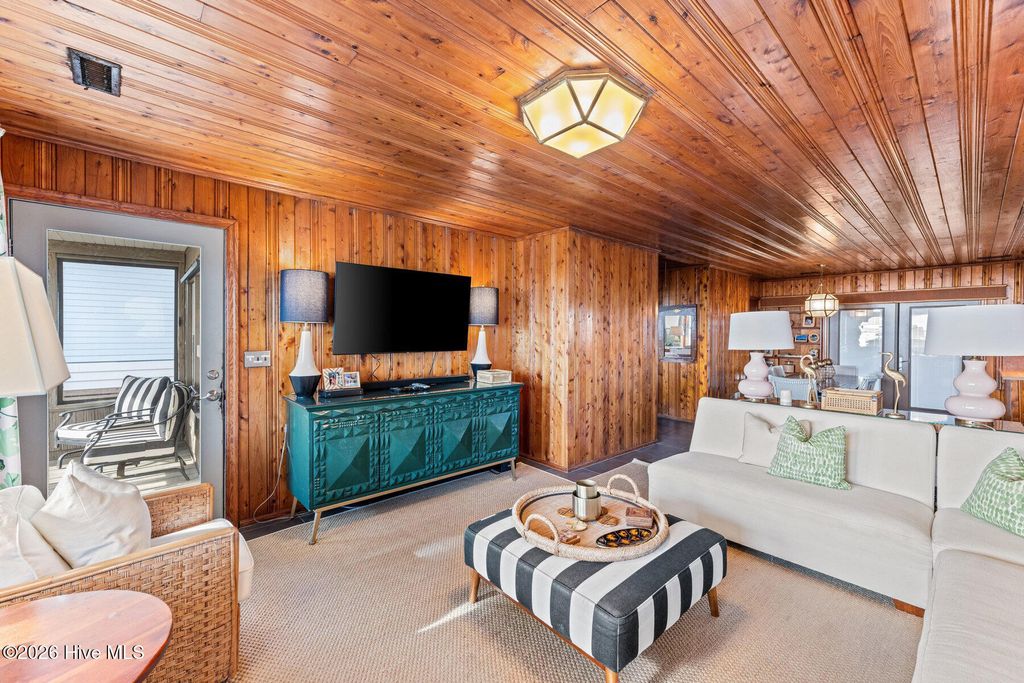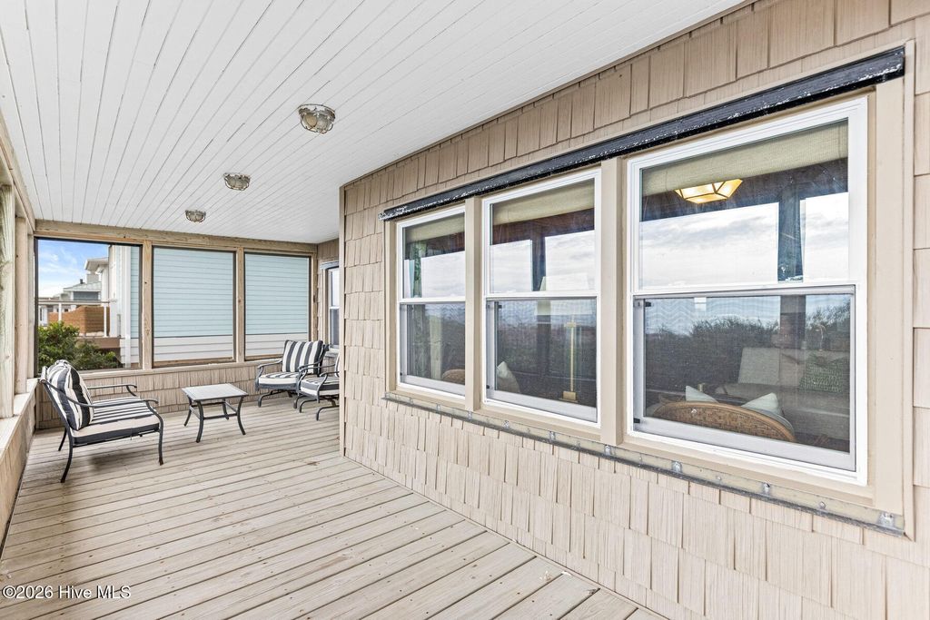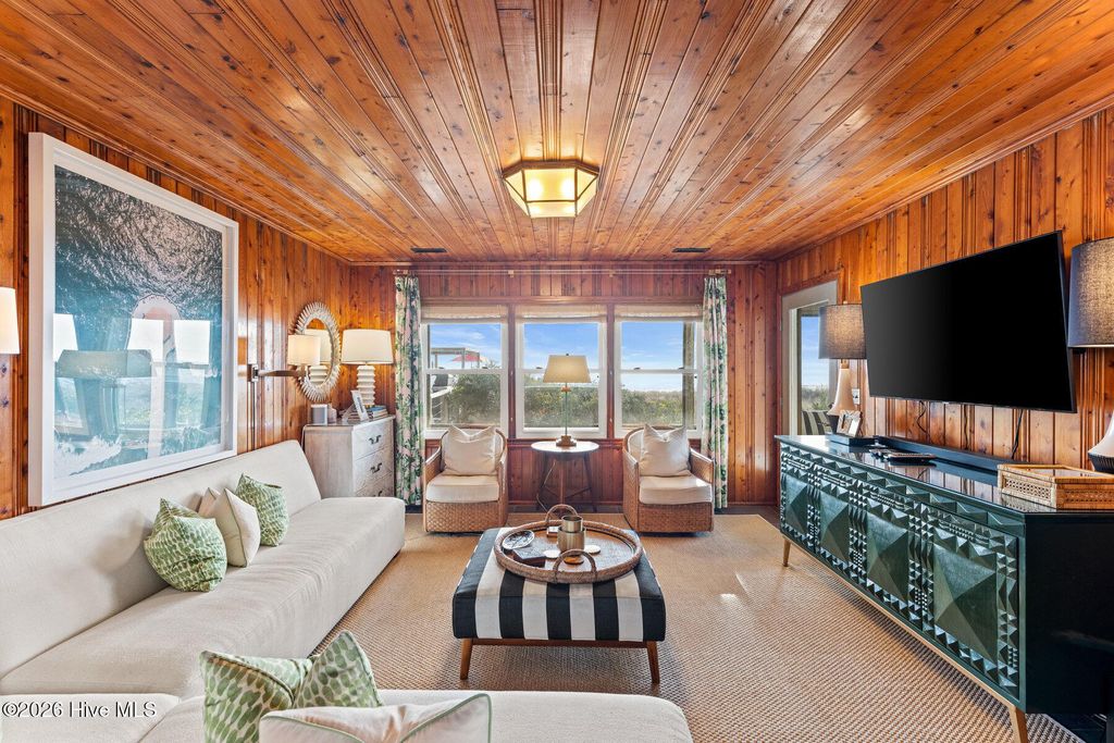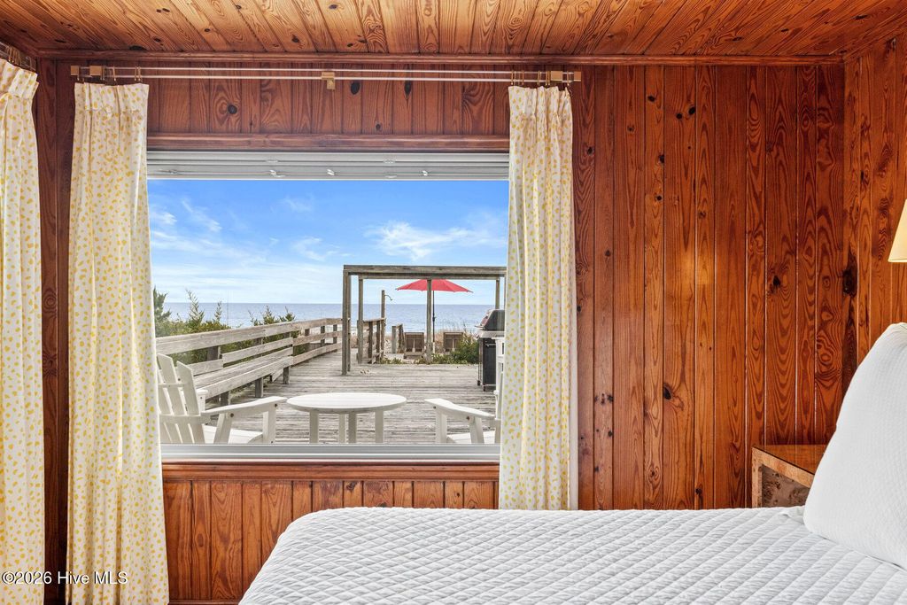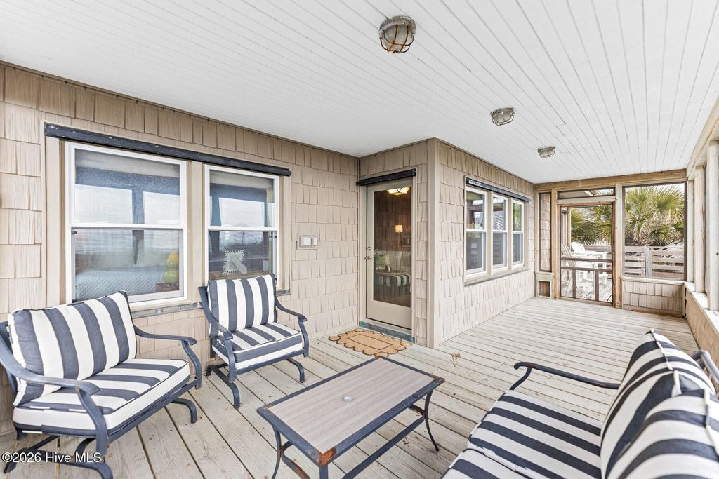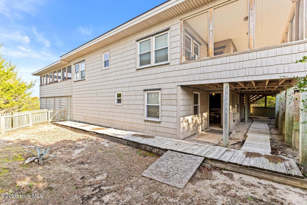 Be charmed by this classic Topsail Beach oceanfront cottage at 411 S Anderson Blvd, a carefully renovated and lovingly kept 3-bedroom, 2-bath retreat offering sweeping Atlantic views and direct beach access. Warm knotty-pine style detailing and tile flooring create a relaxed coastal feel, while large oceanside windows frame the sunrise and fill the living area with natural light. An open living/dining space flows to a spacious oceanfront deck and covered porch, perfect for morning coffee, evening cocktails, and watching dolphins cruise by. The efficient kitchen with an island and combination dining area makes hosting a breeze. The central HVAC with supplemental units, and a practical layout keep beach life simple and low maintenance. An interior elevator and thoughtful features add convenience for bringing in groceries and luggage. The enclosed and conditioned ground floor serves as an indoor recreation area and media area plus space for a work area or toy storage. The two car garage with wet weather entry provides added convenience. Outside, classic coastal construction on pilings, generous decking, and a ground-level area with outdoor shower and storage create an ideal setup for surfboards, fishing gear, and beach toys. The very large, screened porch has a spa. Or it could be converted into additional living space over time. The deep 0.47-acre lot with 70 feet of frontage offers an impressive footprint along the quiet, residential stretch of S Anderson to include abundant parking for family and guests. The charming shops and restaurants of Topsail Beach village are just a short golf-cart or bike ride away or an easy walk. Whether you envision a personal second home, an income-producing vacation rental, or a long-term hold in a prime oceanfront location, this timeless cottage delivers the laid-back Topsail lifestyle so many buyers are seeking.