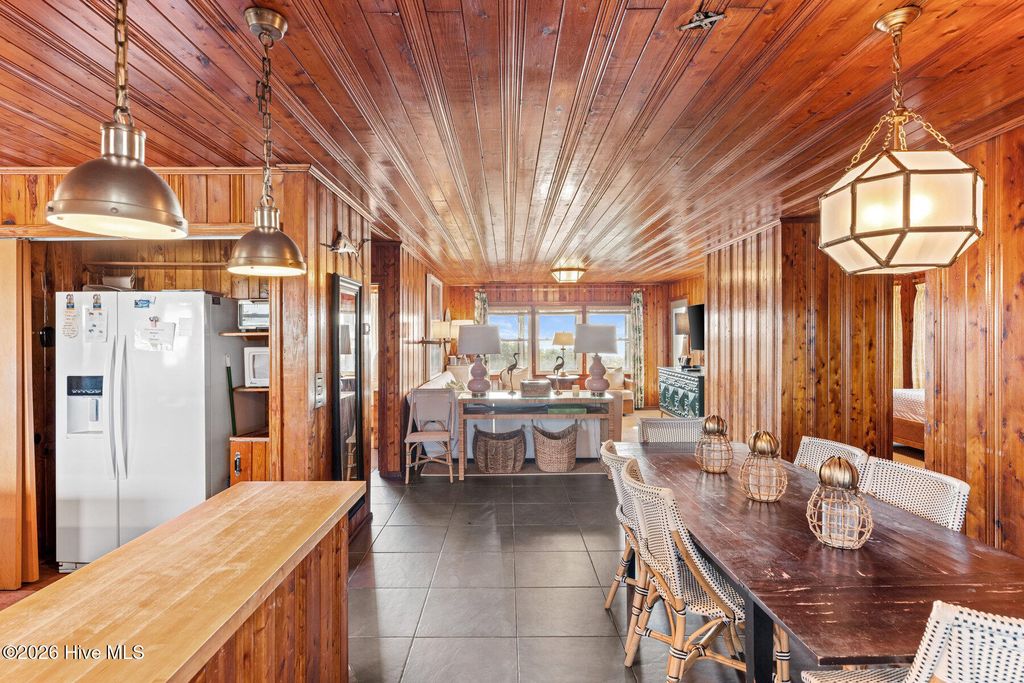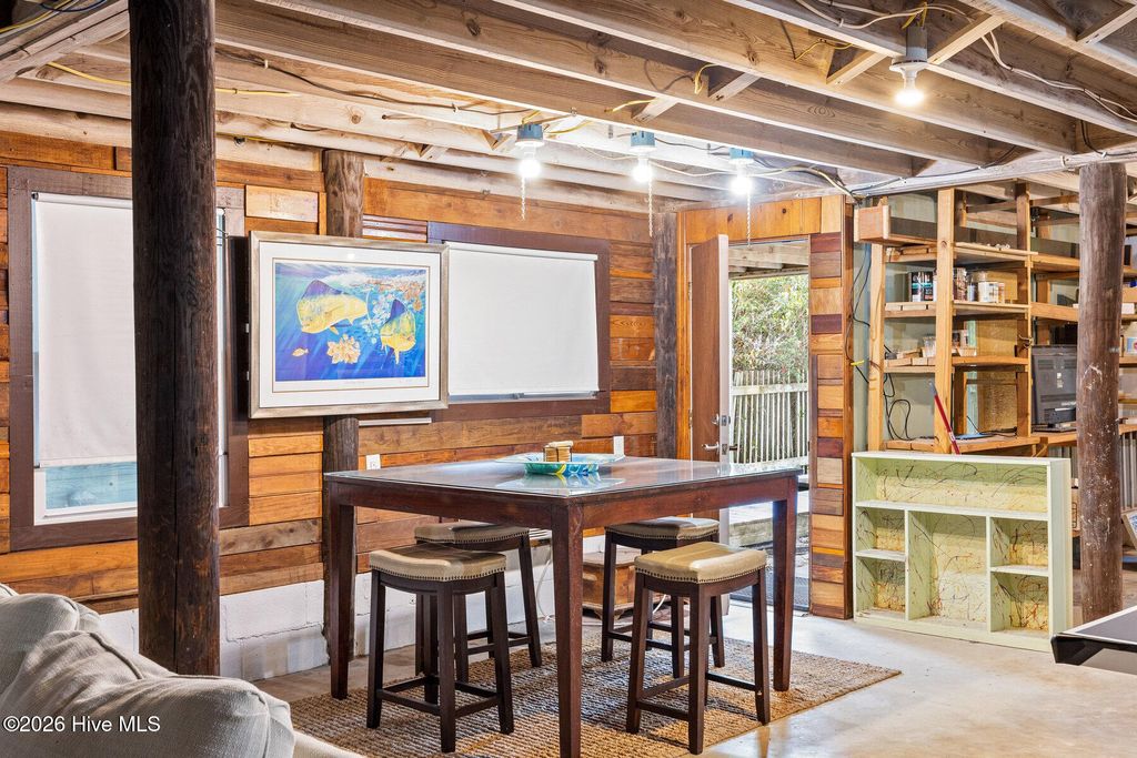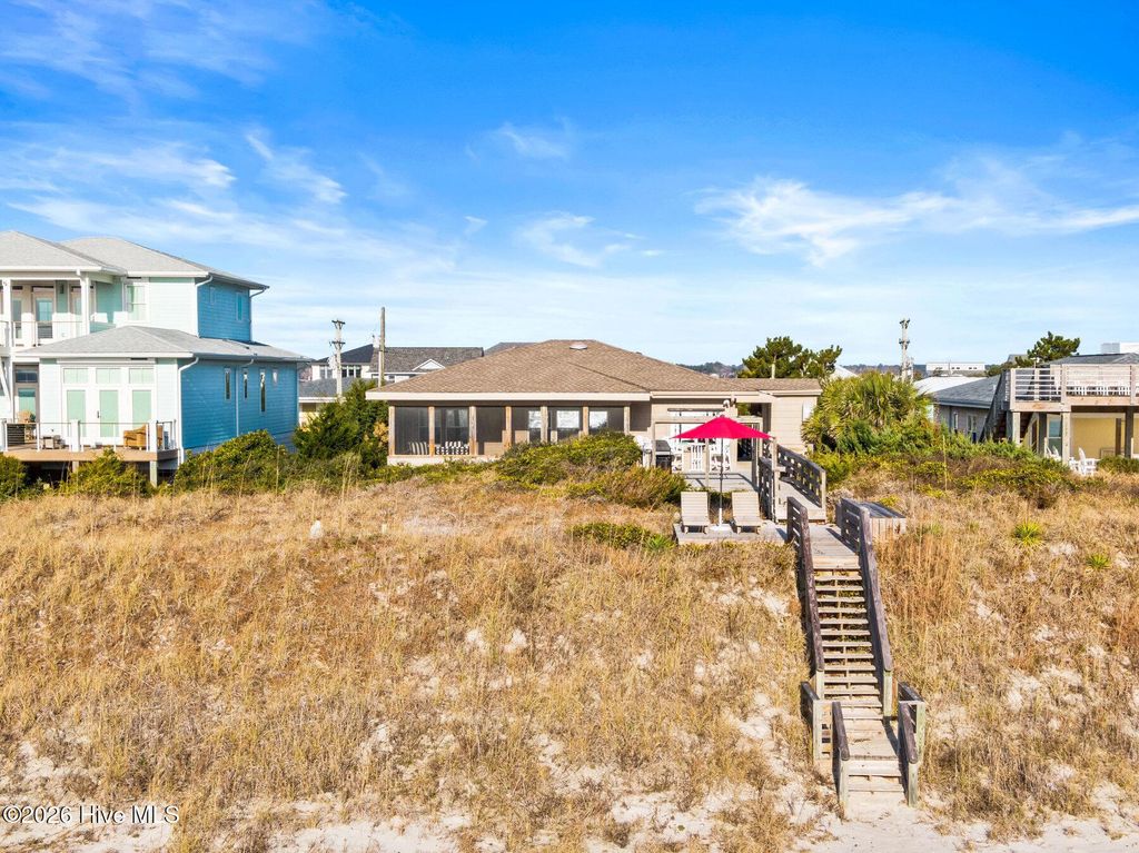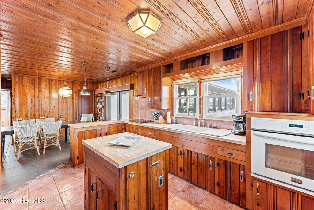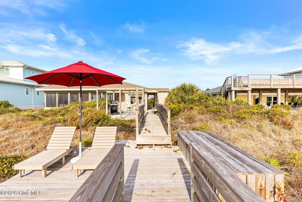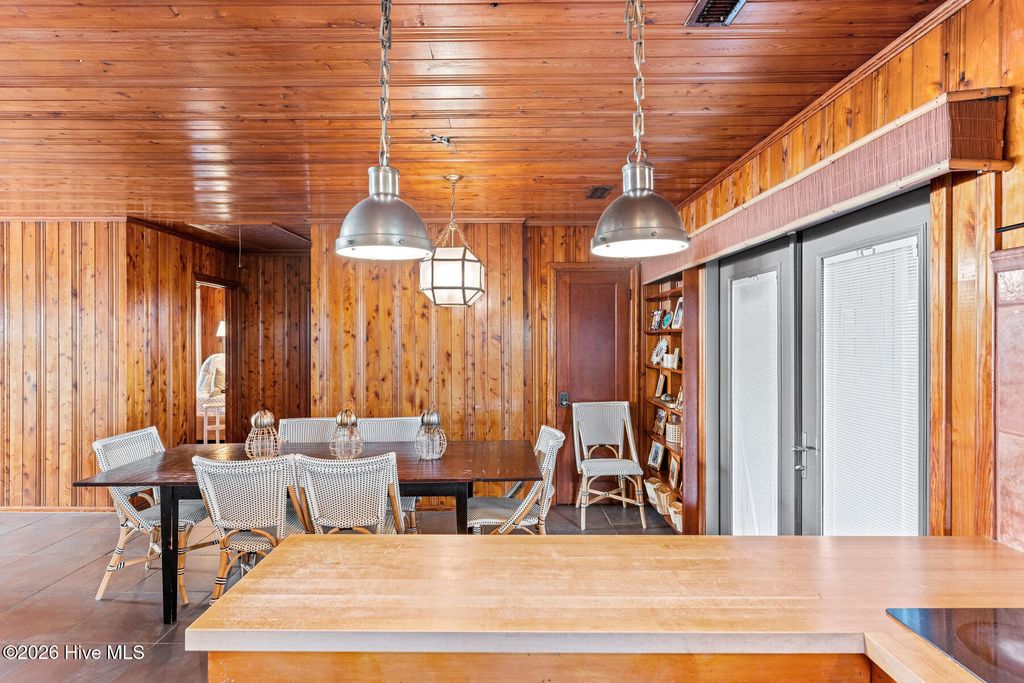 Be charmed by this classic Topsail Beach oceanfront cottage at 411 S Anderson Blvd, a carefully renovated and lovingly kept 3-bedroom, 2-bath retreat offering sweeping Atlantic views and direct beach access. Warm knotty-pine style detailing and tile flooring create a relaxed coastal feel, while large oceanside windows frame the sunrise and fill the living area with natural light. An open living/dining space flows to a spacious oceanfront deck and covered porch, perfect for morning coffee, evening cocktails, and watching dolphins cruise by. The efficient kitchen with an island and combination dining area makes hosting a breeze. The central HVAC with supplemental units, and a practical layout keep beach life simple and low maintenance. An interior elevator and thoughtful features add convenience for bringing in groceries and luggage. The enclosed and conditioned ground floor serves as an indoor recreation area and media area plus space for a work area or toy storage. The two car garage with wet weather entry provides added convenience. Outside, classic coastal construction on pilings, generous decking, and a ground-level area with outdoor shower and storage create an ideal setup for surfboards, fishing gear, and beach toys. The very large, screened porch has a spa. Or it could be converted into additional living space over time. The deep 0.47-acre lot with 70 feet of frontage offers an impressive footprint along the quiet, residential stretch of S Anderson to include abundant parking for family and guests. The charming shops and restaurants of Topsail Beach village are just a short golf-cart or bike ride away or an easy walk. Whether you envision a personal second home, an income-producing vacation rental, or a long-term hold in a prime oceanfront location, this timeless cottage delivers the laid-back Topsail lifestyle so many buyers are seeking.