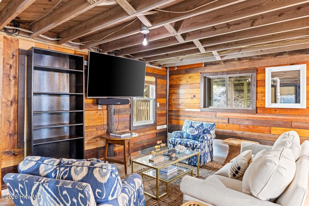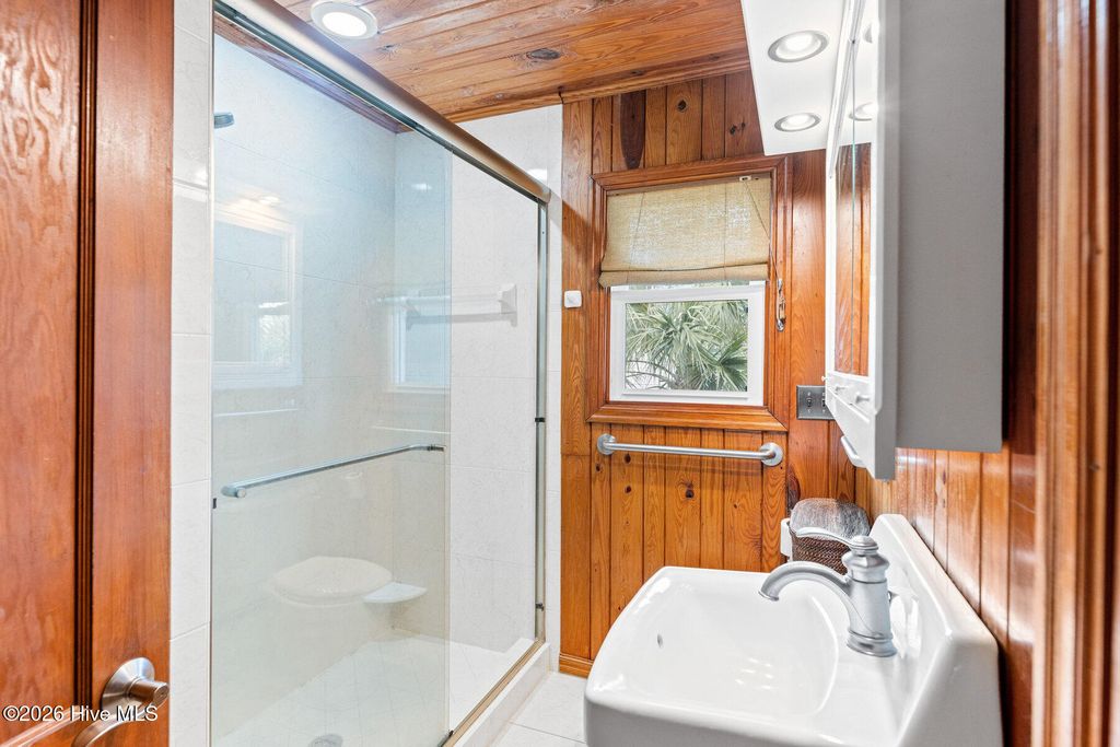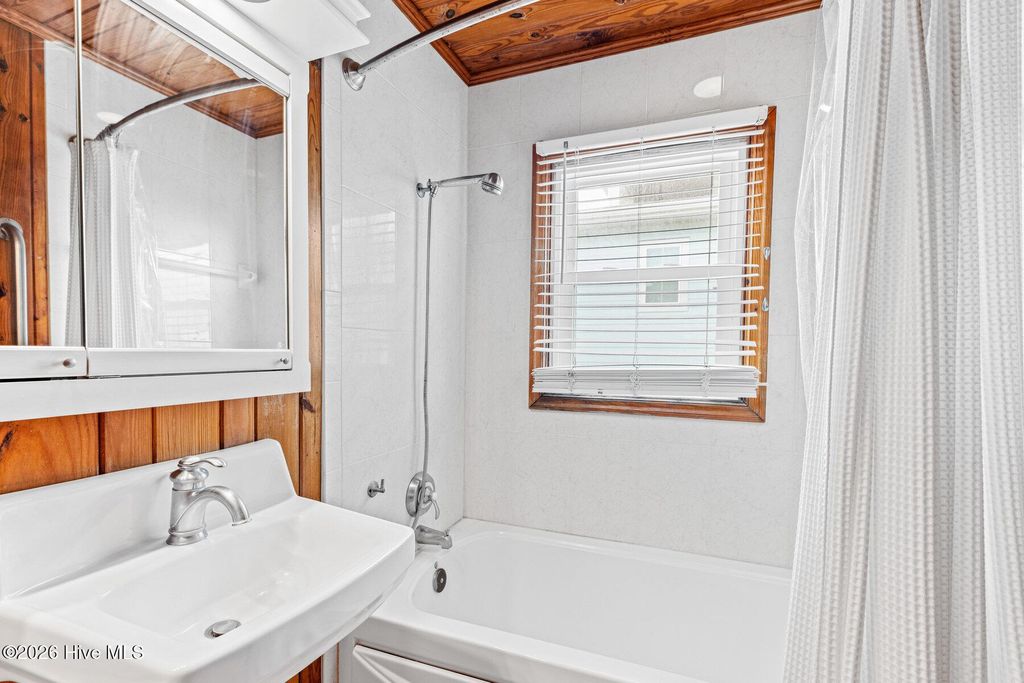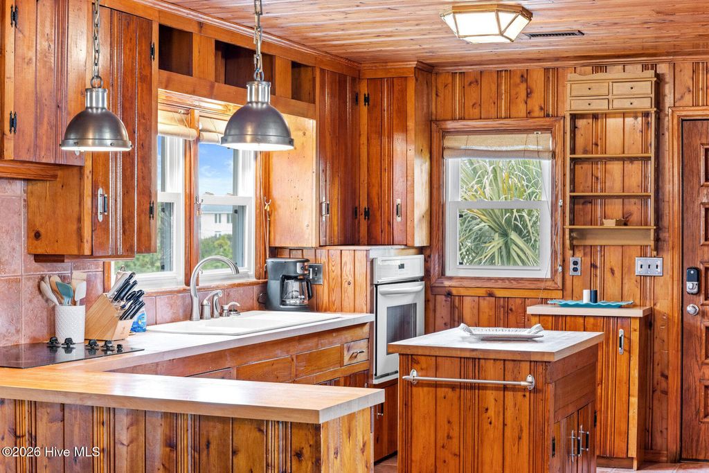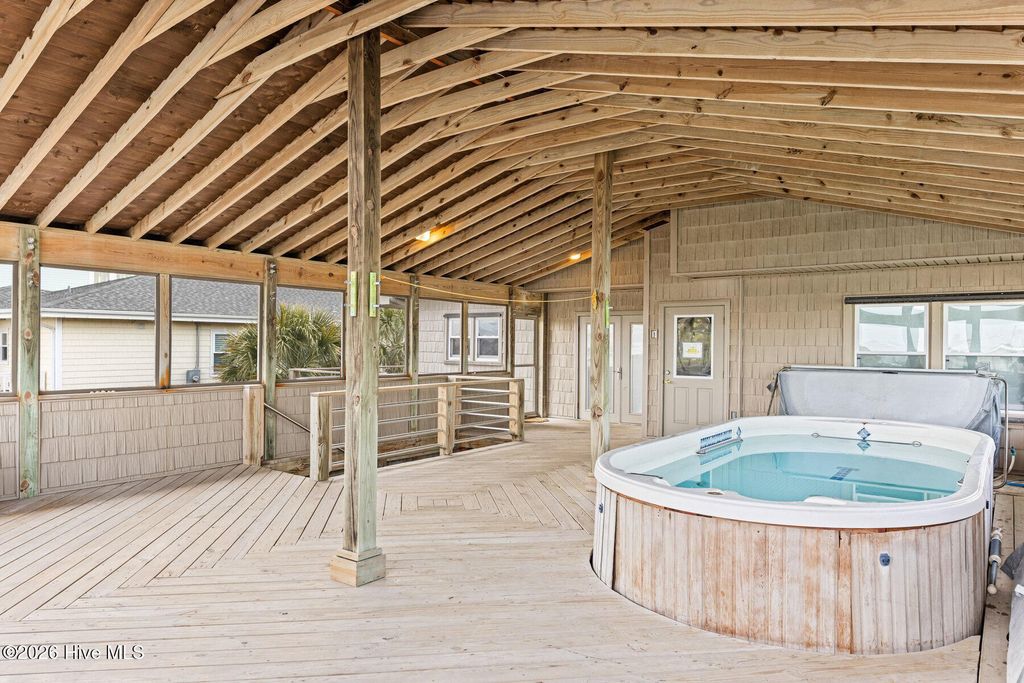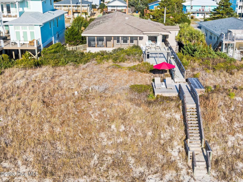 Be charmed by this classic Topsail Beach oceanfront cottage at 411 S Anderson Blvd, a carefully renovated and lovingly kept 3-bedroom, 2-bath retreat offering sweeping Atlantic views and direct beach access. Warm knotty-pine style detailing and tile flooring create a relaxed coastal feel, while large oceanside windows frame the sunrise and fill the living area with natural light. An open living/dining space flows to a spacious oceanfront deck and covered porch, perfect for morning coffee, evening cocktails, and watching dolphins cruise by. The efficient kitchen with an island and combination dining area makes hosting a breeze. The central HVAC with supplemental units, and a practical layout keep beach life simple and low maintenance. An interior elevator and thoughtful features add convenience for bringing in groceries and luggage. The enclosed and conditioned ground floor serves as an indoor recreation area and media area plus space for a work area or toy storage. The two car garage with wet weather entry provides added convenience. Outside, classic coastal construction on pilings, generous decking, and a ground-level area with outdoor shower and storage create an ideal setup for surfboards, fishing gear, and beach toys. The very large, screened porch has a spa. Or it could be converted into additional living space over time. The deep 0.47-acre lot with 70 feet of frontage offers an impressive footprint along the quiet, residential stretch of S Anderson to include abundant parking for family and guests. The charming shops and restaurants of Topsail Beach village are just a short golf-cart or bike ride away or an easy walk. Whether you envision a personal second home, an income-producing vacation rental, or a long-term hold in a prime oceanfront location, this timeless cottage delivers the laid-back Topsail lifestyle so many buyers are seeking.