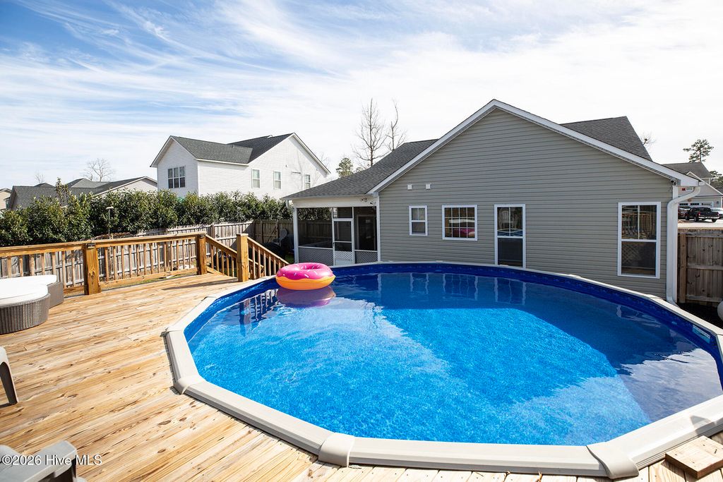 The Knolls at Turkey Creek - one of the region's most sought-after water access communities! The curb appeal of this home is superb, enhanced by its rocking chair front porch, lush landscape, and attractive architectural accents. Quality construction by Stevens Fine Homes, this open-designed floorplan is accentuated by its volume ceiling, wide plank flooring, and a muted color palette. The kitchen boasts high-quality stainless appliances, upgraded granite countertops with bar seating, custom white cabinetry, pendent lighting, and a sizable pantry. Adjacent to the kitchen, the cheerful breakfast/dining area opens to the spacious screened porch. The downstairs primary suite is a retreat of its own offering a trey ceiling, abundant natural sunlight, and a large walk-in closet; the primary bathroom encompasses a double vanity, soaking tub, and separate shower. Two additional downstairs bedrooms are equally well appointed, have ample closet space and share the hall bathroom. Upstairs, there is a 4th bedroom - also with a walk-in closet with access to the adjacent full bathroom. Also, on this level - there is a bonus room ideal for a home office, playroom, or flex space. Other important features include a gas fireplace, laundry room, volume-controlled speakers (downstairs), platformed storage shed and a (climate controlled) 2-car garage with new unique floor finishing. One of the most prominent features of the home is the aboveground saltwater pool with an expansive deck overlooking scenic views of Turkey Creek. There is also a community ramp, gazebo, day dock and community pond. Welcome home!