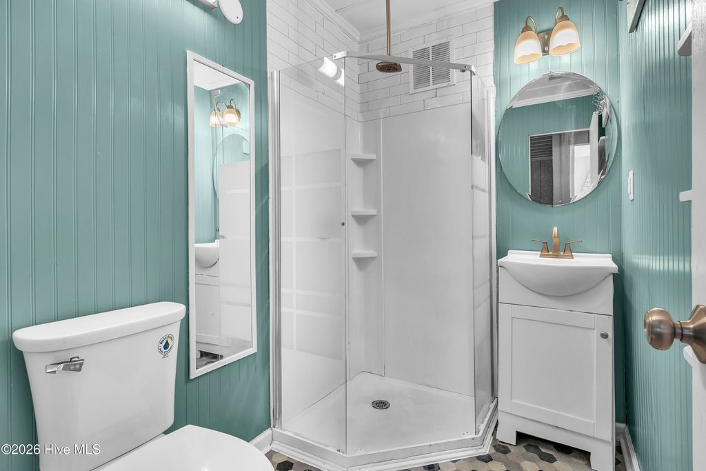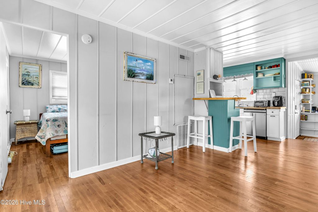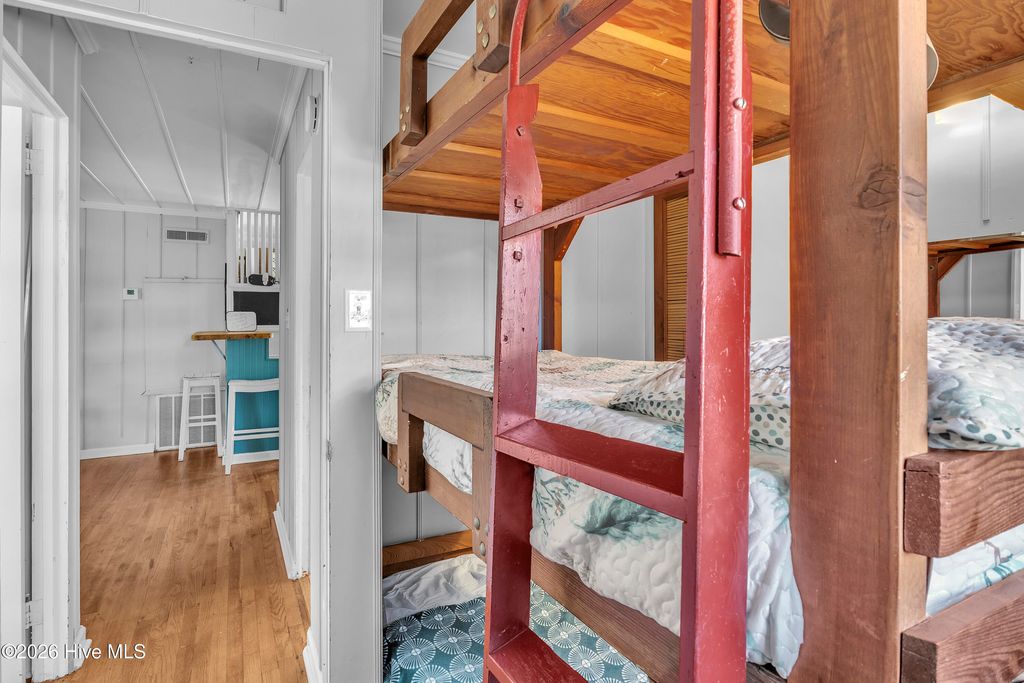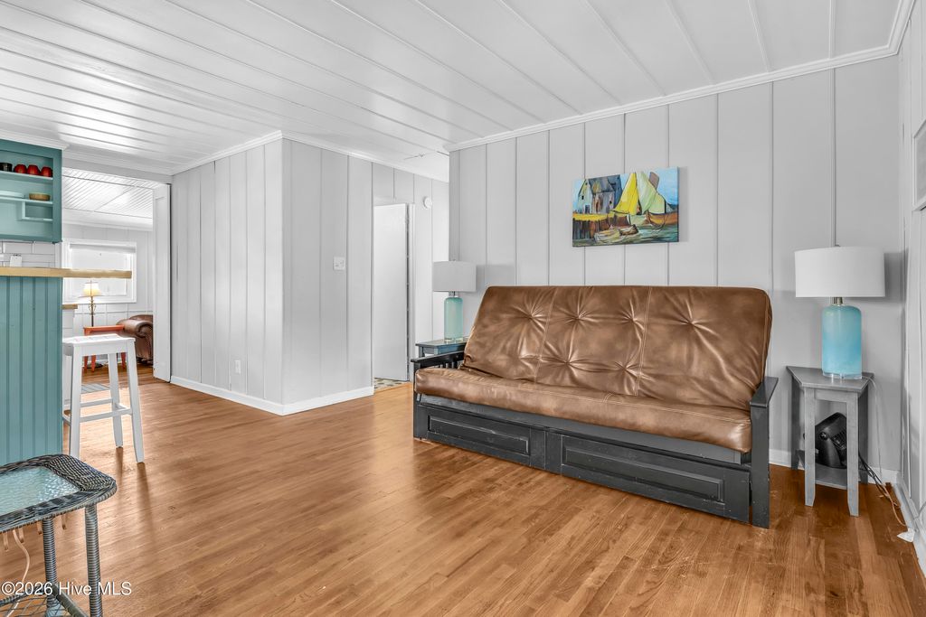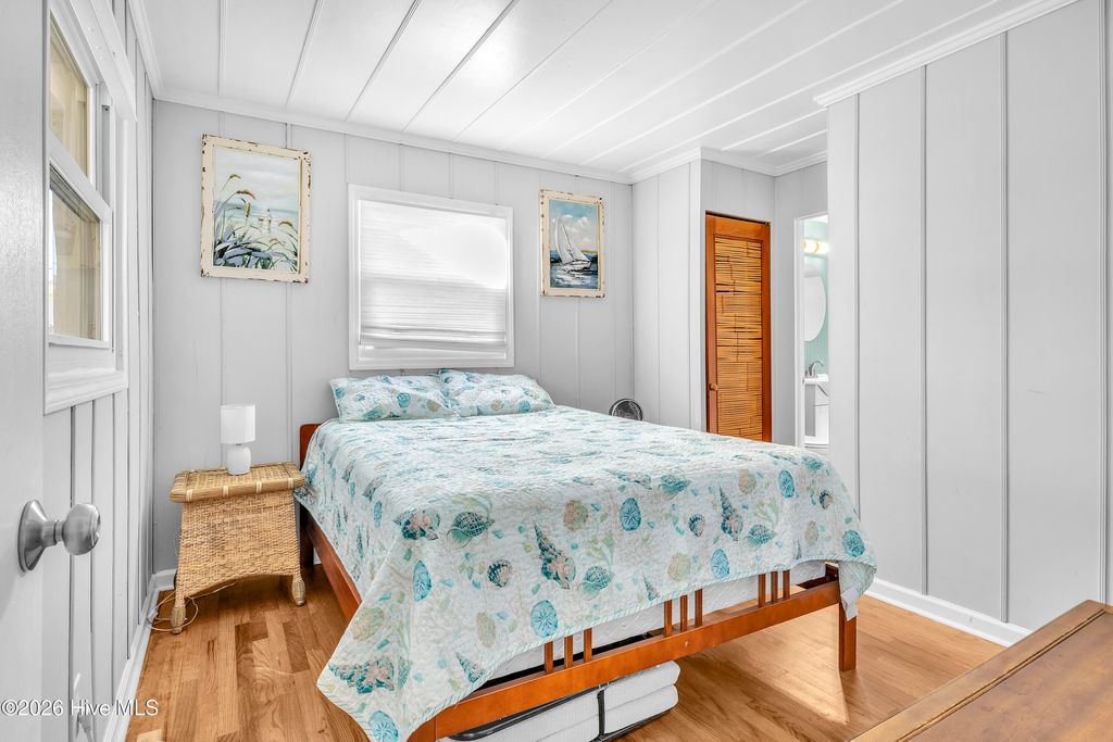 Located on the 3rd Row in Surf City between beach accesses 11 & 12 this charming historic Bungalow has all the history with modern perks. Completely renovated, the owners preserved the original hardwood floors and costal charm of this home. With a deeded access to N shore Drive, this house is a short walk to the beach, 5 -10 minutes from restaurants, coffee shops and Surf City IGA, you are in the middle of Surf and sun! Enjoy the sound of ocean waves from your large porch or hang out under the pergola! Can sleep up to 10 with the right bed configuration. Plenty of parking and NO HOA fees. Whether you're relaxing after a day in the sun or enjoying peaceful mornings on the large porch, this property captures the essence of coastal North Carolina living.