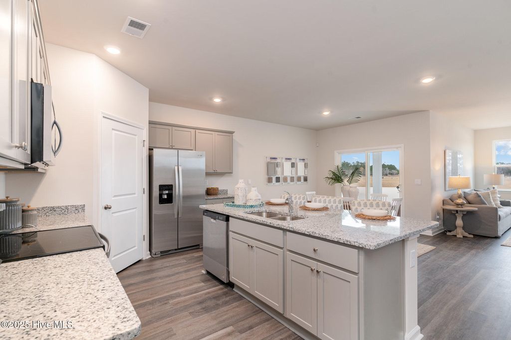 You don't want to miss out on this home! The popular Dover plan is a masterfully designed single level home with a great open concept kitchen, living, and dining area. Kitchen features include a corner walk in pantry, stainless steel appliances including a refrigerator, granite countertops, and an island with breakfast bar. Located at the back of the home, the private owner's suite offers a large walk-in closet, dual vanity, and a 5' shower. Access to the rear covered porch just off the dining area creates a wonderful outdoor space to relax and unwind. At the front of the house are two secondary bedrooms and a flex room. The versatile flex room with french doors can be used as an office, formal dining room or playroom. Head upstairs to a large loft/game room and a bedroom with a full bathroom. 2' faux wood blinds are included on all standard windows. This is America's Smart Home! Each of our homes comes with an industry leading smart home technology package that will allow you to control the thermostat, front door light and lock, and video doorbell from your smartphone. *Photos are of a similar Dover home. (Home and community information, including pricing, included features, terms, availability and amenities, are subject to change prior to sale at any time without notice or obligation. Square footages are approximate. Pictures, photographs, colors, features, and sizes are for illustration purposes only and will vary from the homes as built. Equal housing opportunity builder.)